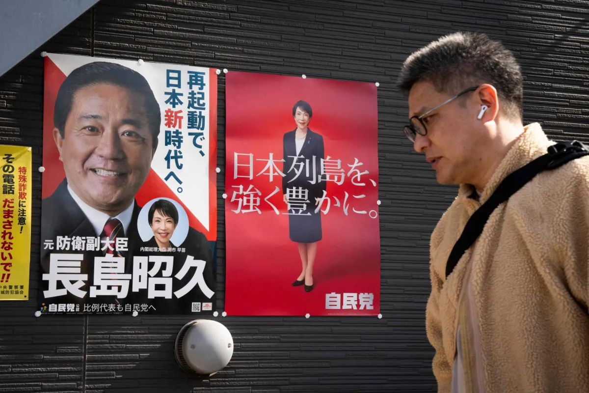 رجل يمر أمام لافتات انتخابية وسط العاصمة اليابانية طوكيو (أ.ف.ب)