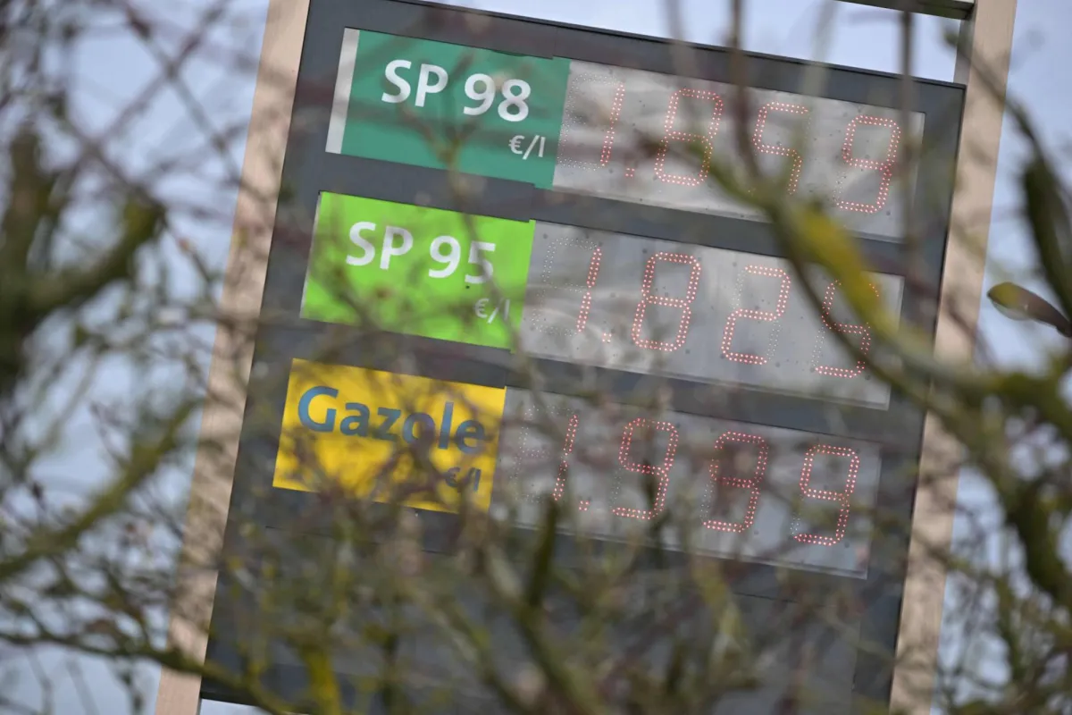 لوحة تعرض أسعار النفط في محطة وقود بمدينة تينتينياك شمال غربي فرنسا (أ.ف.ب)