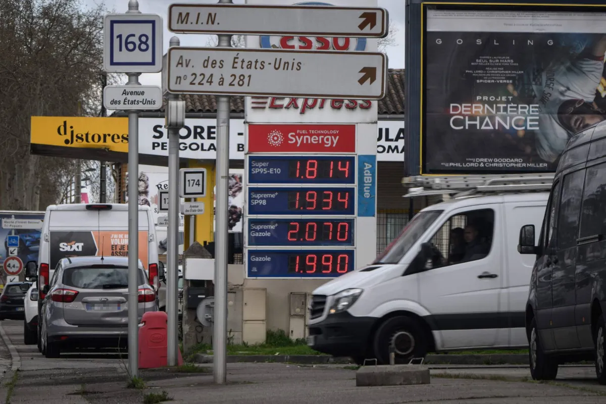 لوحة تعرض أسعار النفط في محطة وقود بمدينة تولوز جنوب غربي فرنسا (أ.ف.ب)