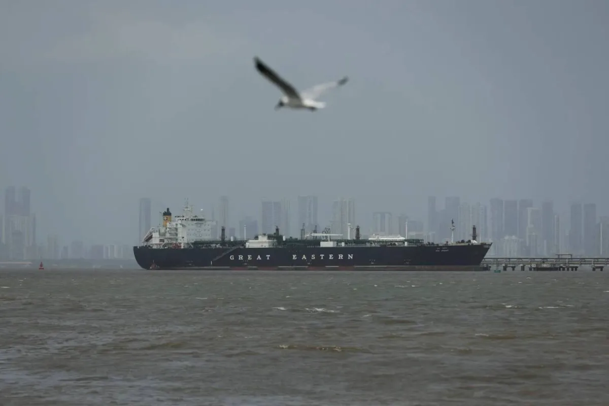 سفينة تنقل غاز البترول المسال في ميناء مومباي بالهند بعد عبورها مضيق هرمز (رويترز)