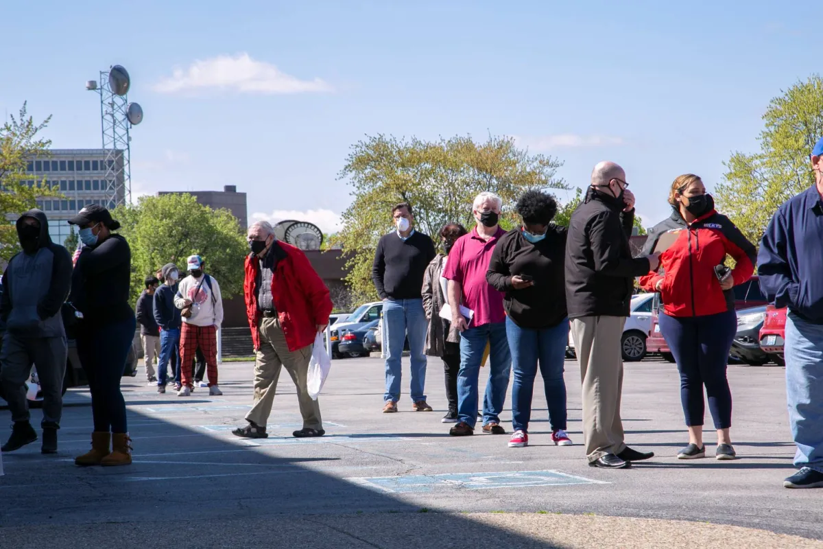 أشخاص يصطفّون خارج مركز توظيف في لويفيل بولاية كنتاكي الأميركية (أرشيفية - رويترز)