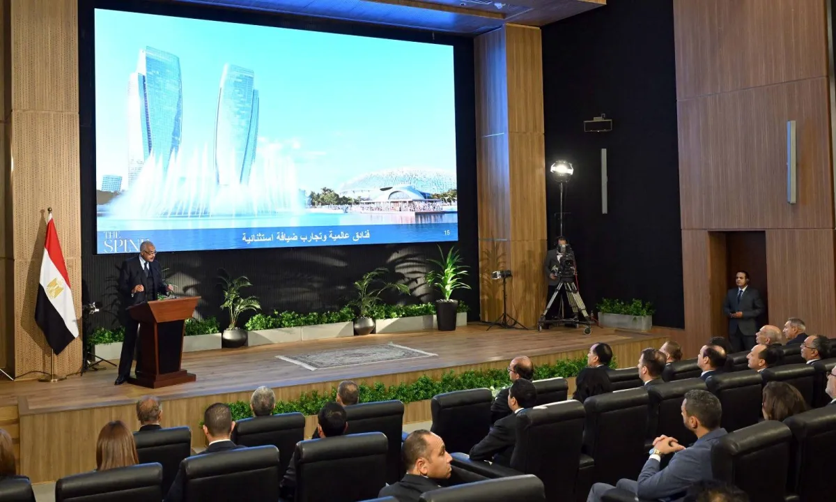 هشام طلعت مصطفى خلال إطلاقه المشروع الجديد في مجلس الوزراء المصري (الشرق الأوسط)