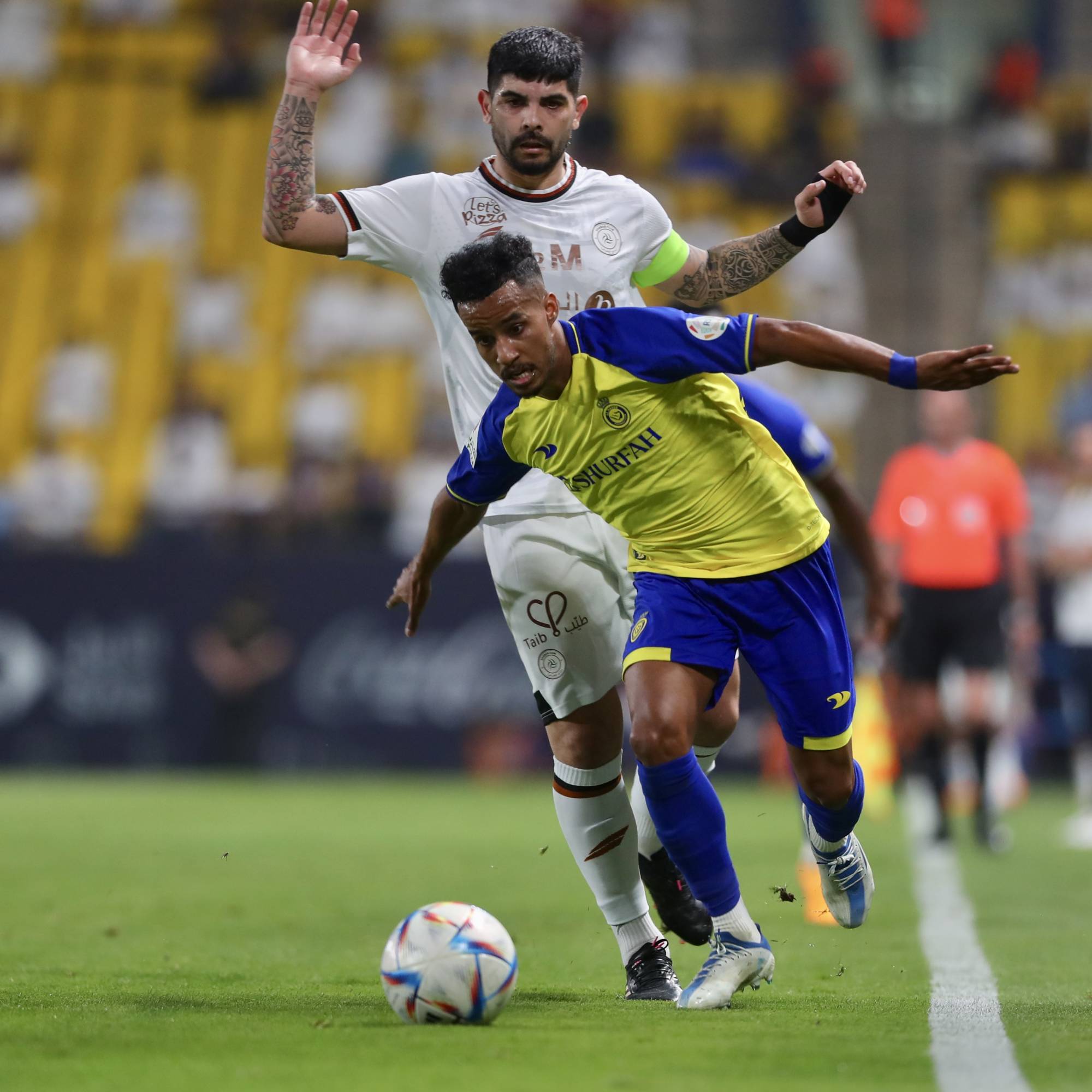 وأشهر تلك اللقطات حدثت خلال الشوط الأول عندما تدخل لاعب وسط الشباب الأرجنتيني ايفر بانيغا على قدم مهاجم النصر عبد الرحمن غريب، ليطالب لاعبو النصر الحكم بركلة جزاء، وينفعل مهاجم النصر البرازيلي أندرسون تاليسكا بشدة على الحكم الإيطالي دانيللي أورساتو، الذي لم يحتسب شيئاً.