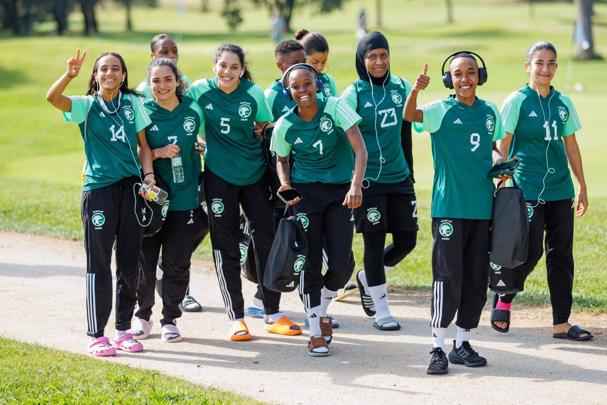 لاعبات الأخضر قبل بدء التدريبات التحضيرية لمواجهة أندورا (الاتحاد السعودي لكرة القدم)