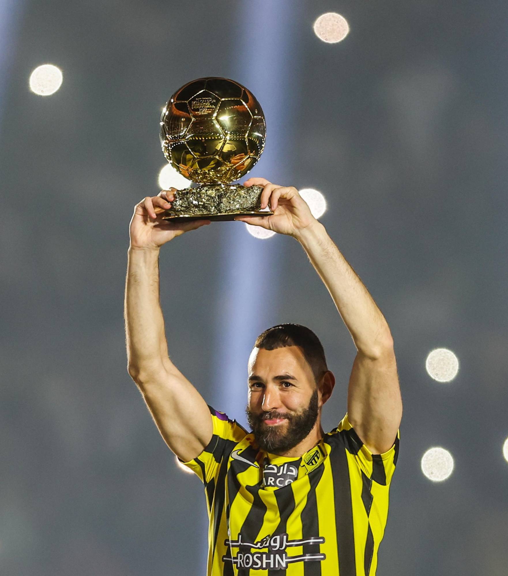 عندما رفع المهاجم الفرنسي كريم بنزيمة جائزة الكرة الذهبية «البالون دور» عاليا خلال حفل تقديمه على ملعب الجوهرة المشعة بجدة وفي حضور الآلاف من عشاق نادي الاتحاد، كان فيما يبدو يلوح بشارة التحدي التي تسبق انطلاق مسيرته في الدوري الأقوى عربيا وقاريا، في مواجهة الكثير من أقرانه العالميين منهم من سبقه وآخرون على درب القدوم؛ لإشعال مبارزة ساخنة ولاهبة على ساحة الدوري الصاعد بسرعة الصاروخ نحو قائمة «الـ10 الأقوى عالميا».