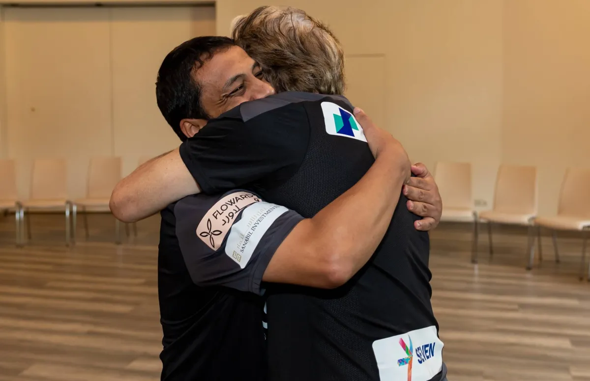 خيسوس يحتضن الشلهوب لدى لقائهما في معسكر الهلال بالنمسا (نادي الهلال)