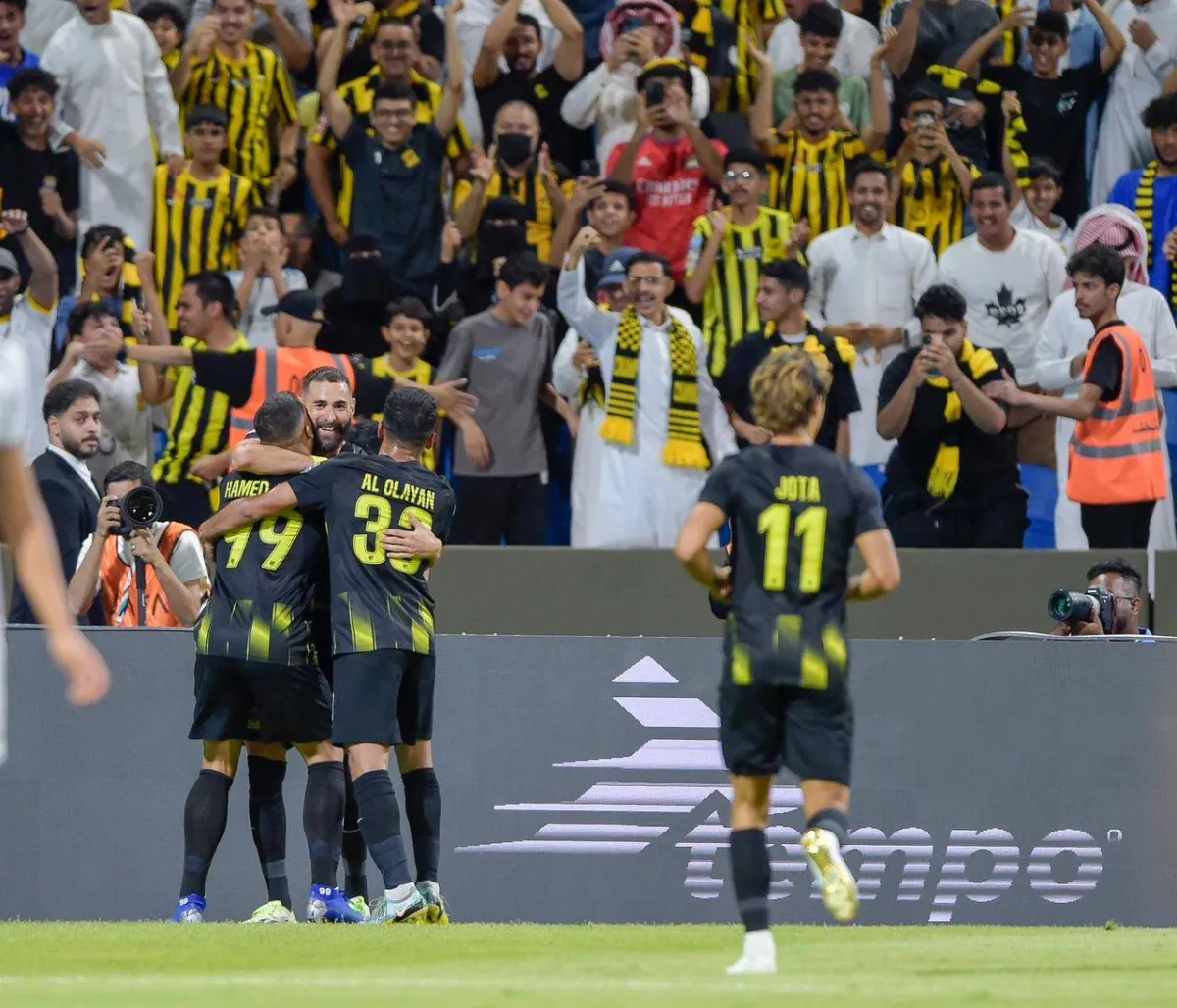 ووجد الفرنسي كريم بنزيمة مهاجم الاتحاد نفسه محاصراً بثلاثة لاعبين عند استلام الكرة في كل مرة.