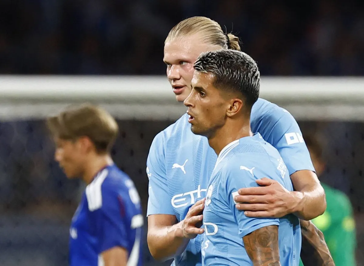 جواو كانسيلو مع هالاند خلال الجولة الآسيوية لمانشستر سيتي (رويترز)