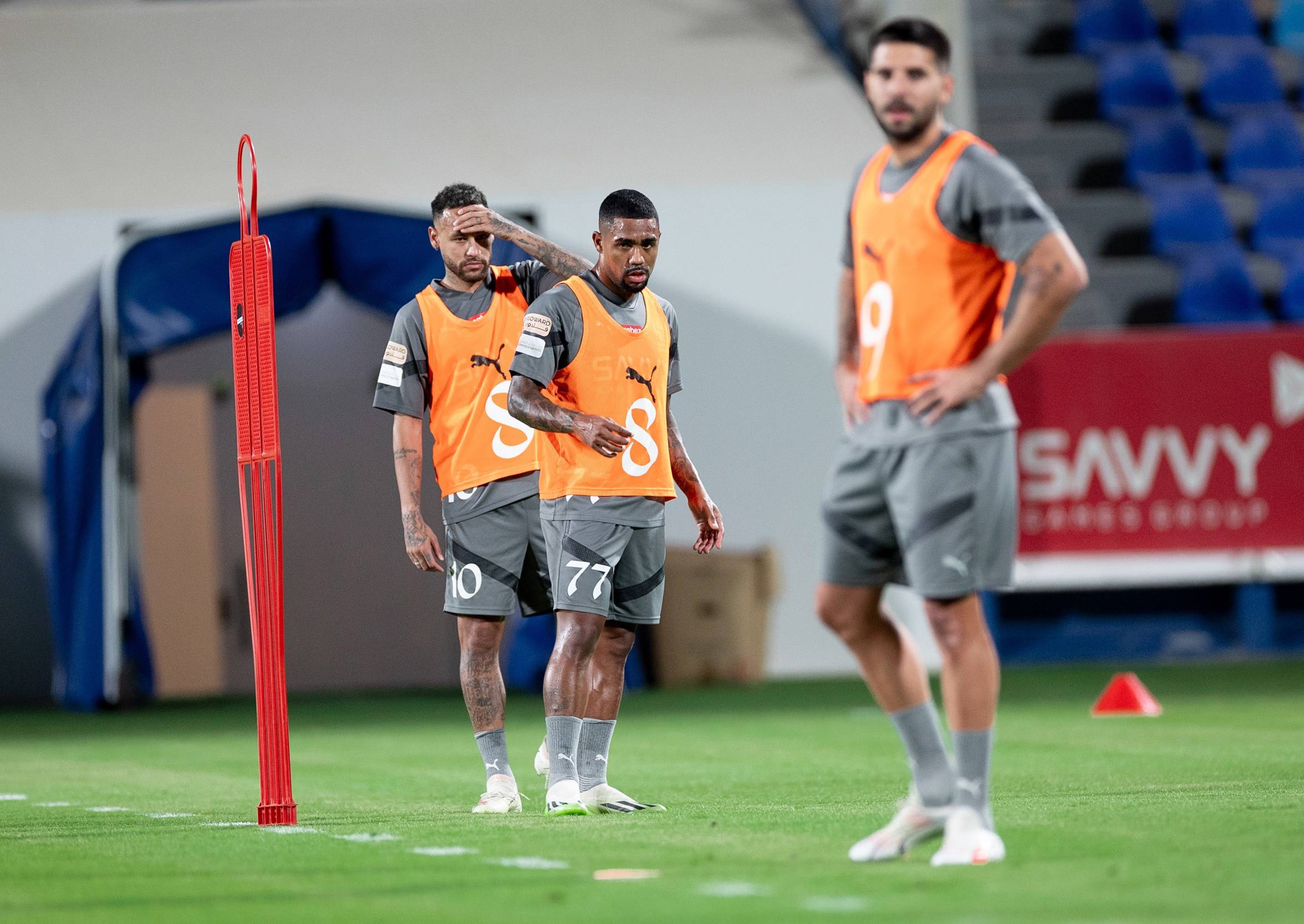 نيمار ومالكوم خلال استعدادات الهلال لمباراة الاتفاق (نادي الهلال)