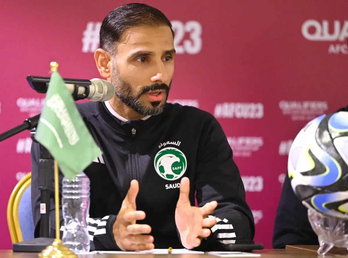 سعد الشهري مدرب الأخضر الأولمبي خلال المؤتمر الصحافي (واس)