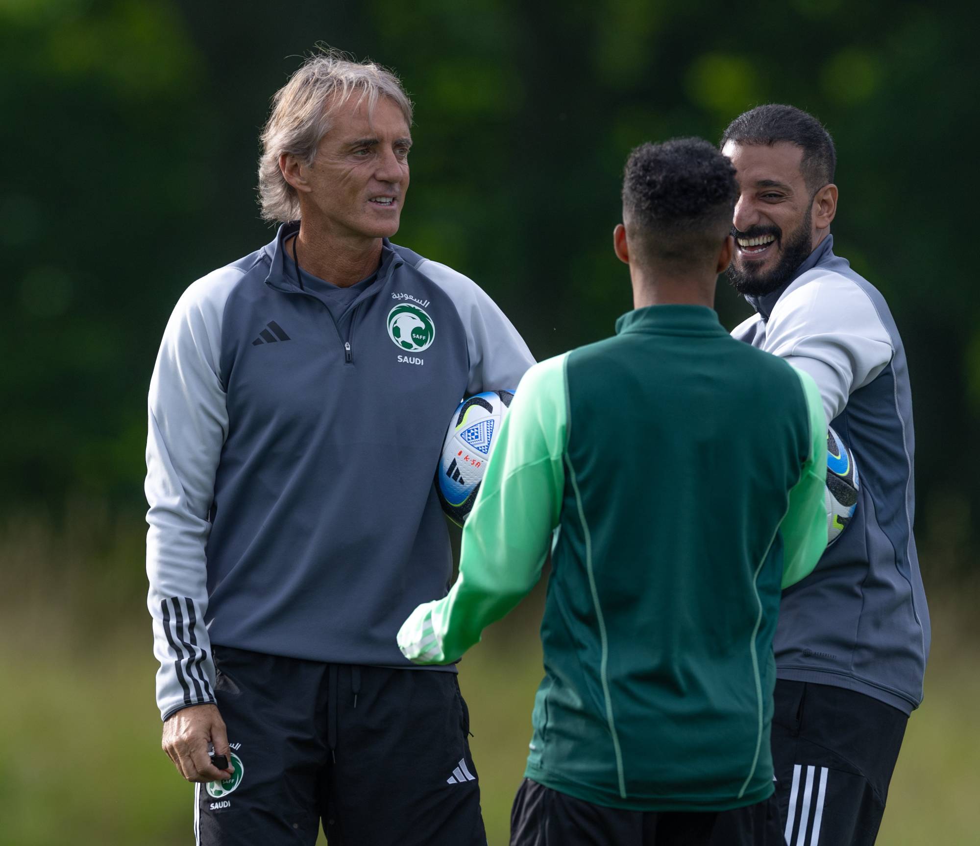 وأجرى لاعبو الأخضر تدريباتهم تحت إشراف المدير الفني روبرتو مانشيني، بدأت بتمارين الإحماء ثم تمرين الاستحواذ، قبل أن يطبق جملاً تكتيكية متنوعة في الحالة الهجومية والدفاعية، لتختتم الحصة التدريبية بتمارين الإطالة.
