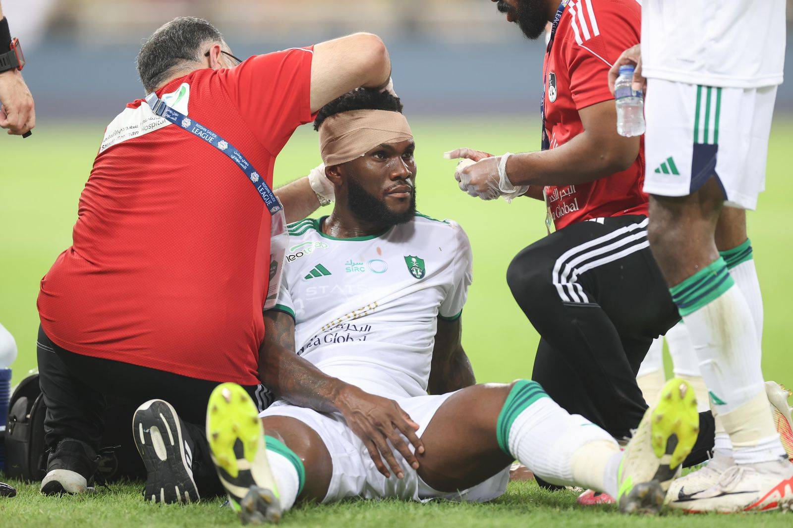 وسقط الإيفواري فرانك كيسيه مع الدقيقة 13 بعد احتكاكه مع مدافع الاتحاد فيلبي لويز لتسيل الدماء من رأسه ويخرج لتلقي العلاج دون أن يتخذ الحكم أي قرار تجاه الحالة، وعاد الإيفواري للملعب مجدداً لكنه سقط مرة أخرى وأربك المشهد الجماهيري في الأهلي قبل عودته وإيقاف التبديل الذي كان قريباً من الحدوث.