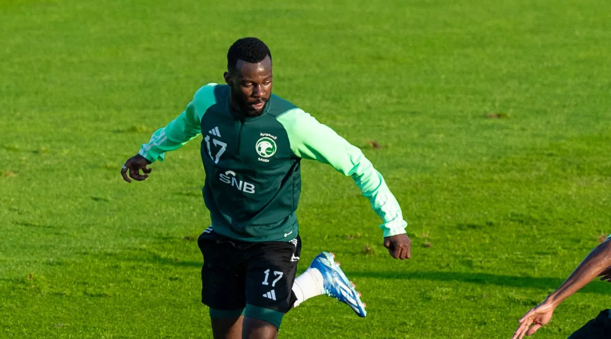 العويس خلال مشاركته في التدريبات (المنتخب السعودي)