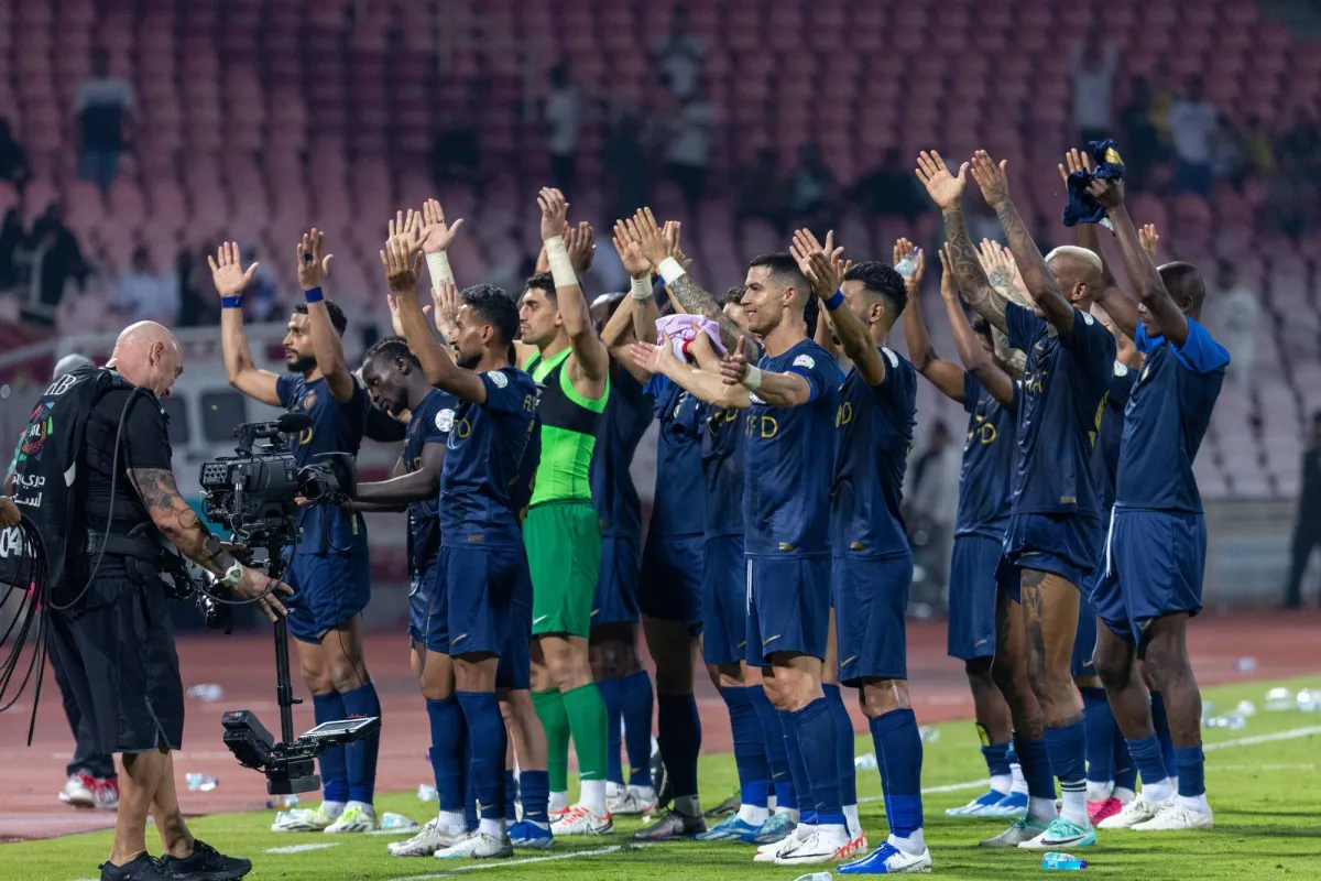فرحة نصراوية عقب الفوز على الوحدة (تصوير: محمد المانع)