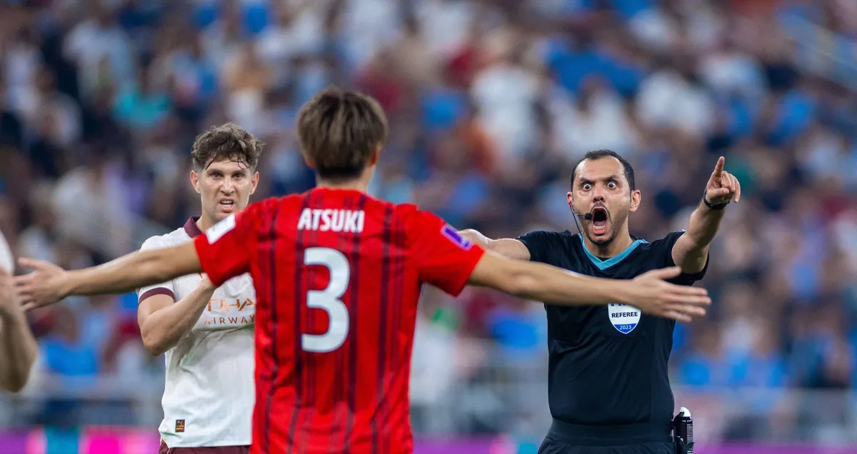 الهويش خلال إدارته لقاء نصف نهائي كأس العالم للأندية (الشرق الأوسط)