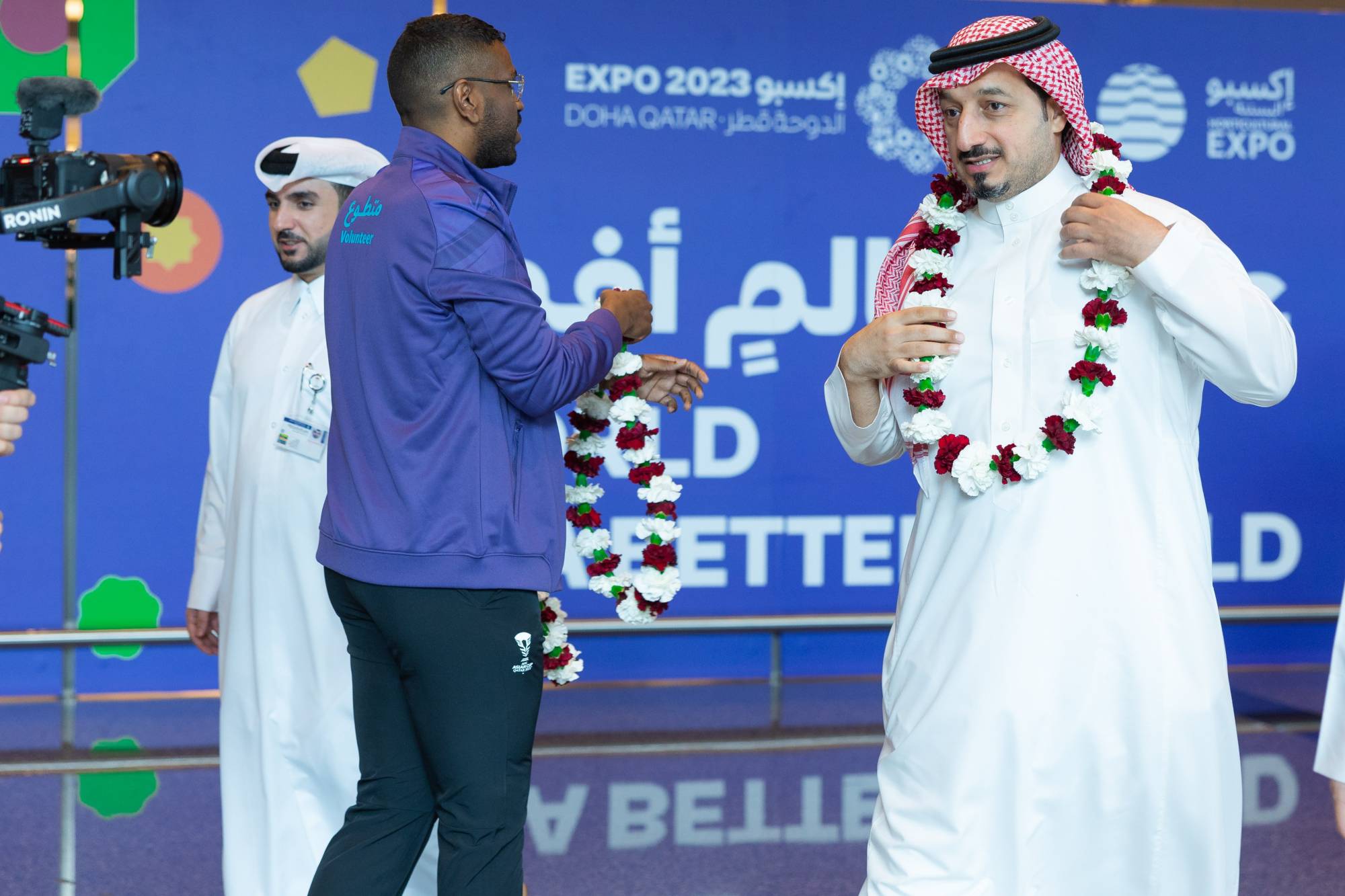 وعند وصول البعثة إلى مطار حمد الدولي، كانت لجنة تنظيم كأس آسيا 2023 في استقبالها؛ حيث قدم ياسر المسحل رئيس مجلس إدارة الاتحاد السعودي لكرة القدم، شكره وتقديره للجنة التنظيم على حسن الاستقبال والضيافة.