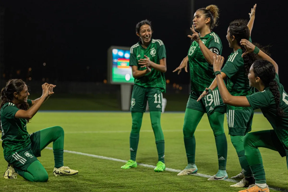 لاعبات الأخضر يحتفلن بالهدف في مرمى موريتانيا (الشرق الأوسط)