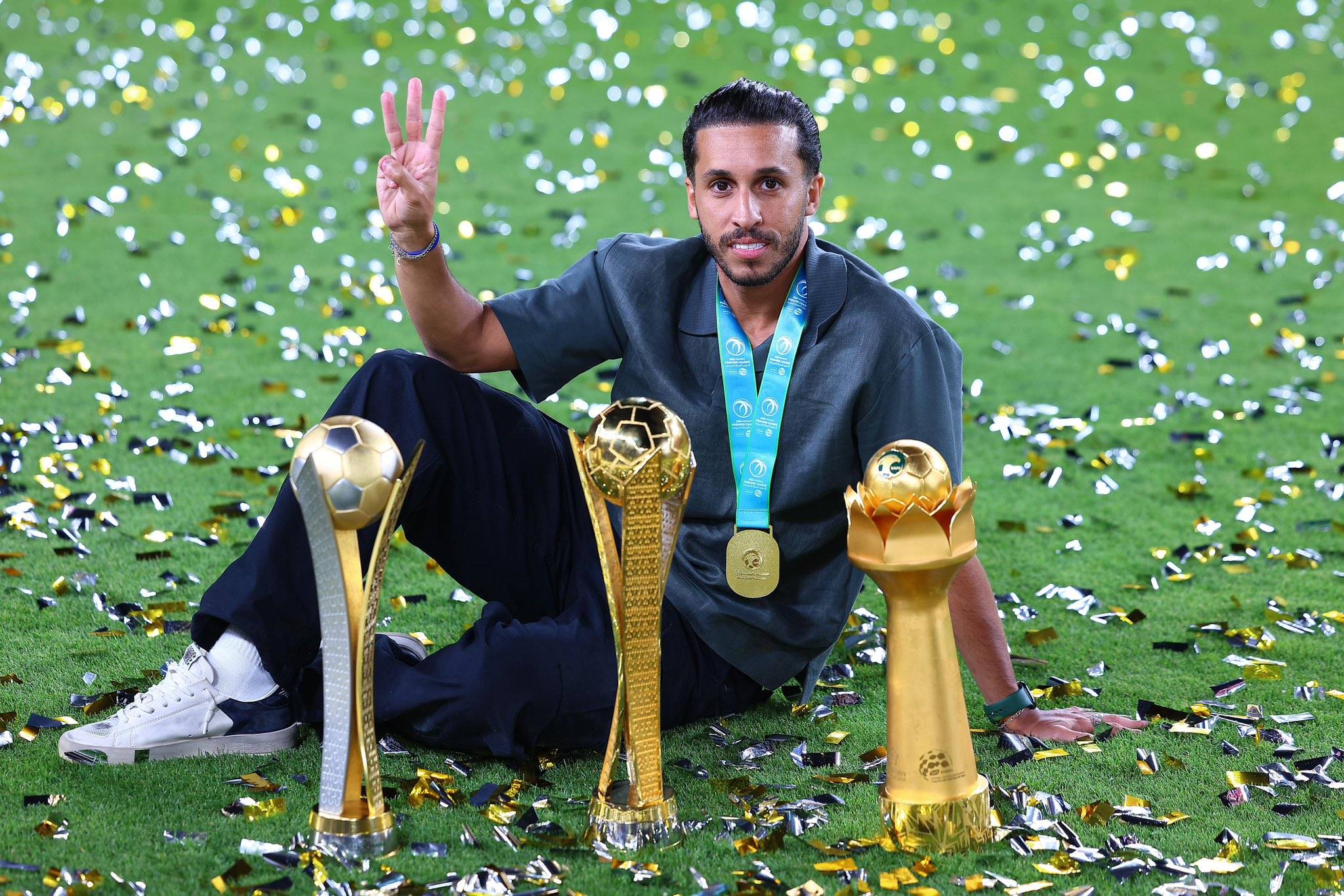 العلوني محتفلاً ببطولته الشخصية الثالثة في دوري السيدات السعودي (النصر)