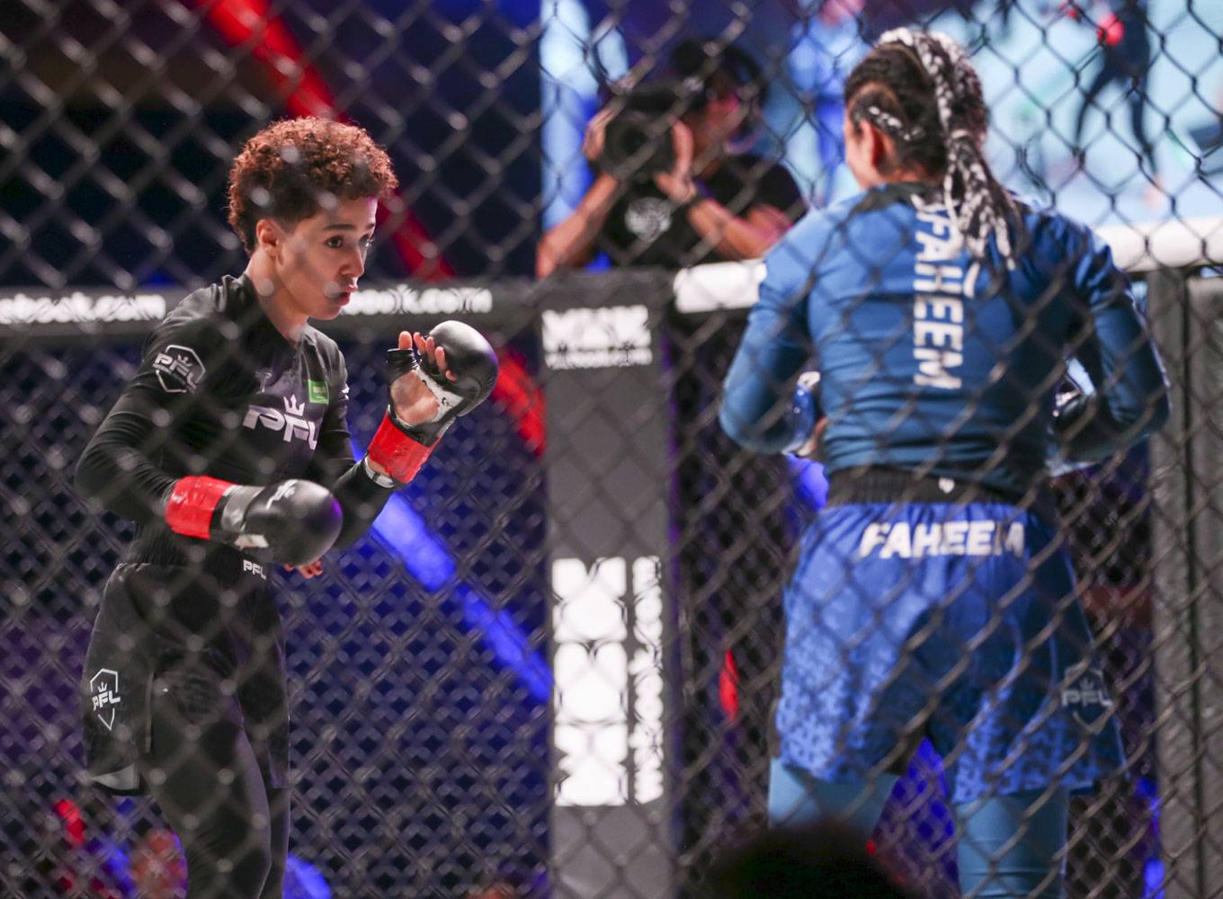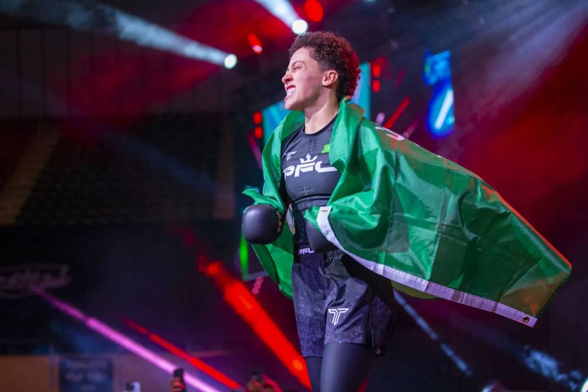 وأنهت المقاتلة السعودية هتان السيف نزالها أمام منافستها المصرية ندى فهيم بالضربة القاضية، نُقلت على أثرها الأخيرة للمستشفى مباشرة.