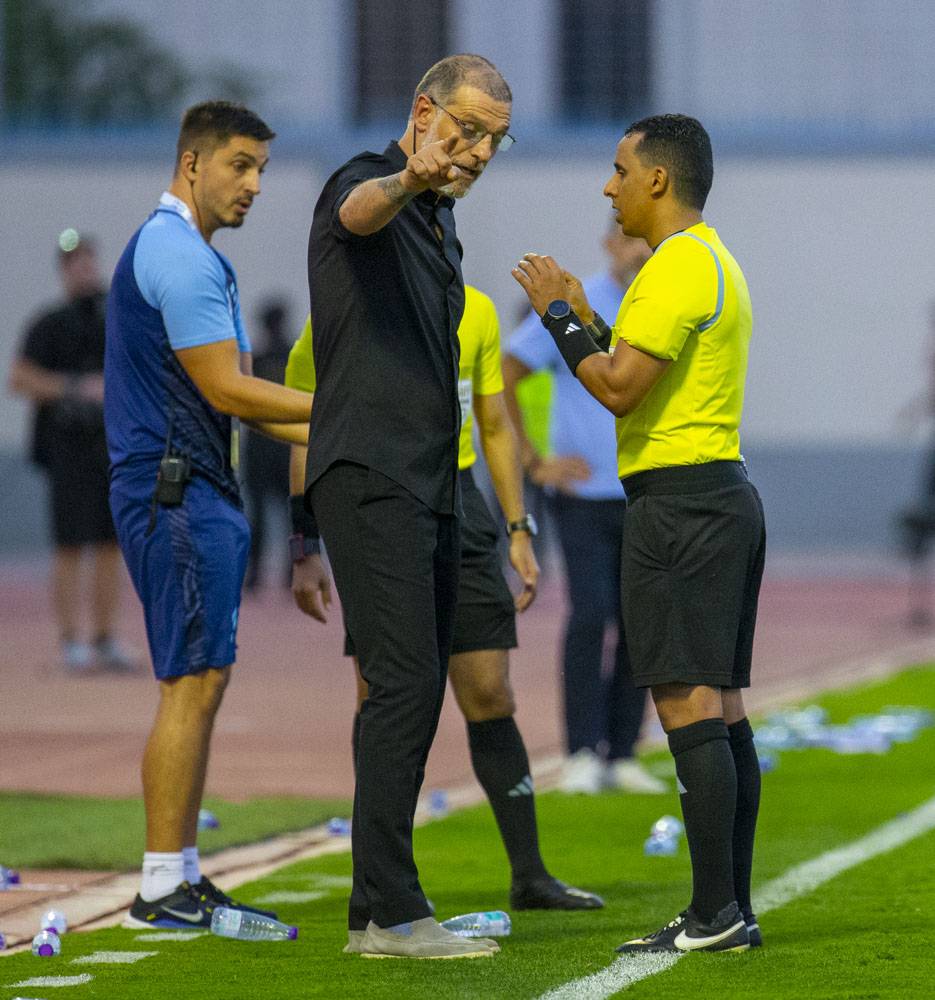 بيليتش مدرب الفتح في نقاش مع حكم المباراة (تصوير: سعد الدوسري)
