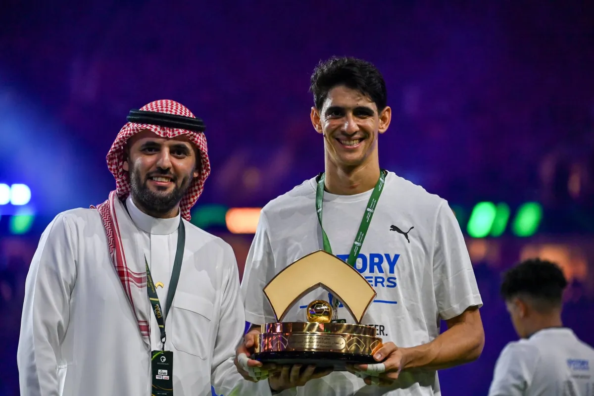 ياسين بونو لحظة تتويجه بجائزة أفضل لاعب (تصوير: علي خمج)