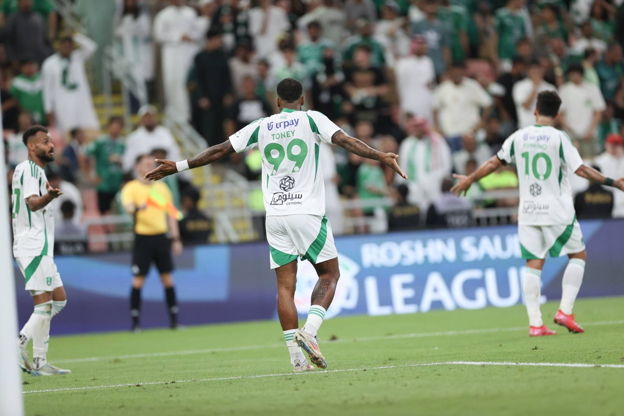 إيفان توني يحتفل بهدفه في شباك الرياض (تصوير: عدنان مهدلي)