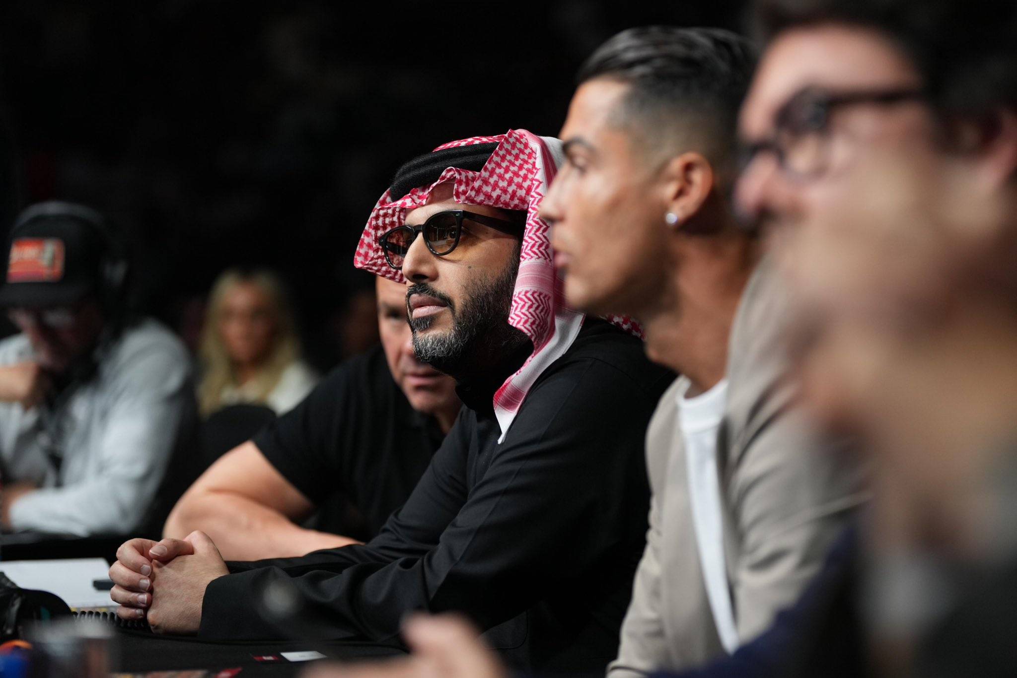 سرق قائد فريق النصر وأسطورة كرة القدم العالمية كريستيانو رونالدو الأنظار أمس السبت بحضوره نزالات «يو إف سي» التي جرت ضمن فعاليات «موسم الرياض»، وتقدم الحضور خلالها المستشار تركي آل الشيخ ونخبة من الرياضيين والمثقفين والفنانين.