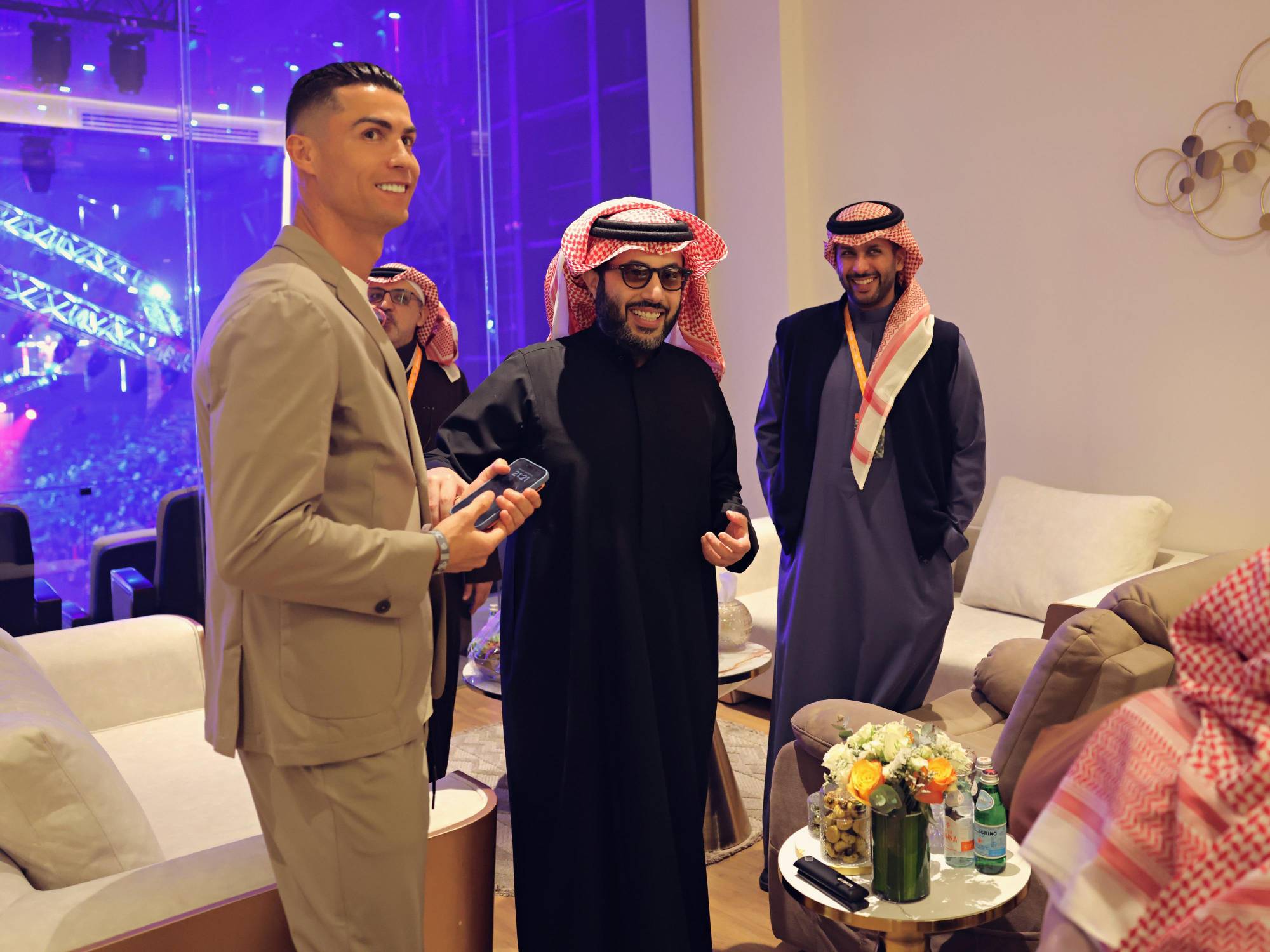 آل الشيخ ورونالدو قبل بدء الفعالية أمس (موسم الرياض)