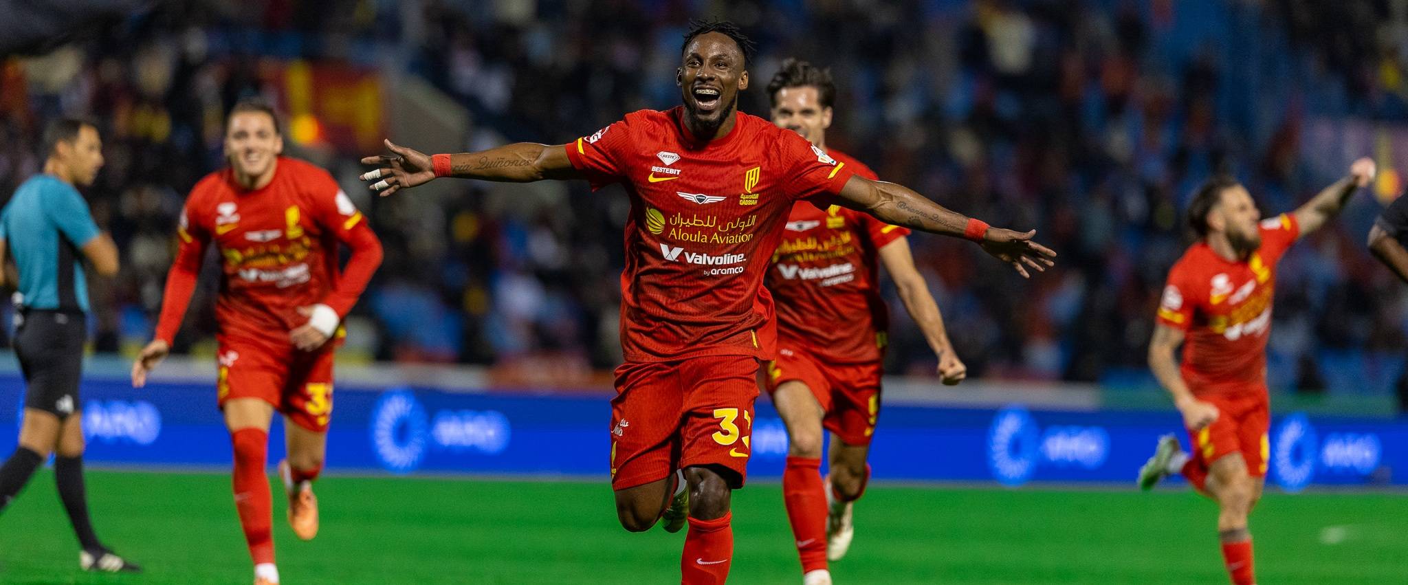 كينونيس محتفلاً بهدفه في مرمى الاتحاد (تصوير: عيسى الدبيسي)