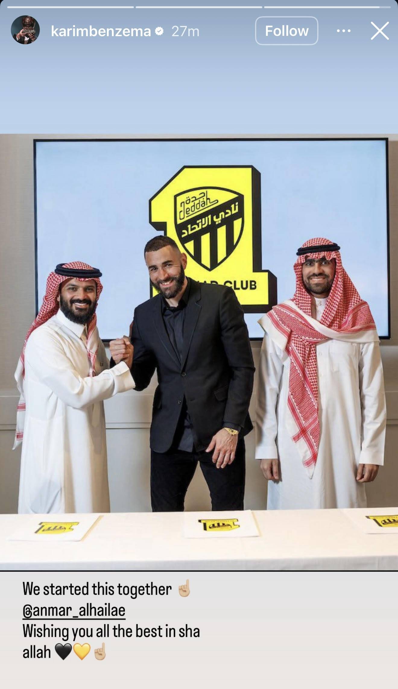 جاء ذلك من خلال منشور عبر منصة «إكس» للنجم الفرنسي قائلاً فيه: «بدأنا هذا معاً... نتمنى لك كل التوفيق إن شاء الله»، مع صورة تجمعه بالثنائي أنمار الحائلي وأحمد كعكي في إشارة لدعم الحائلي لرئاسة مؤسسة النادي غير الربحية قبل انطلاق الجدول الزمني للانتخابات، الأحد المقبل 27 يوليو (تموز).