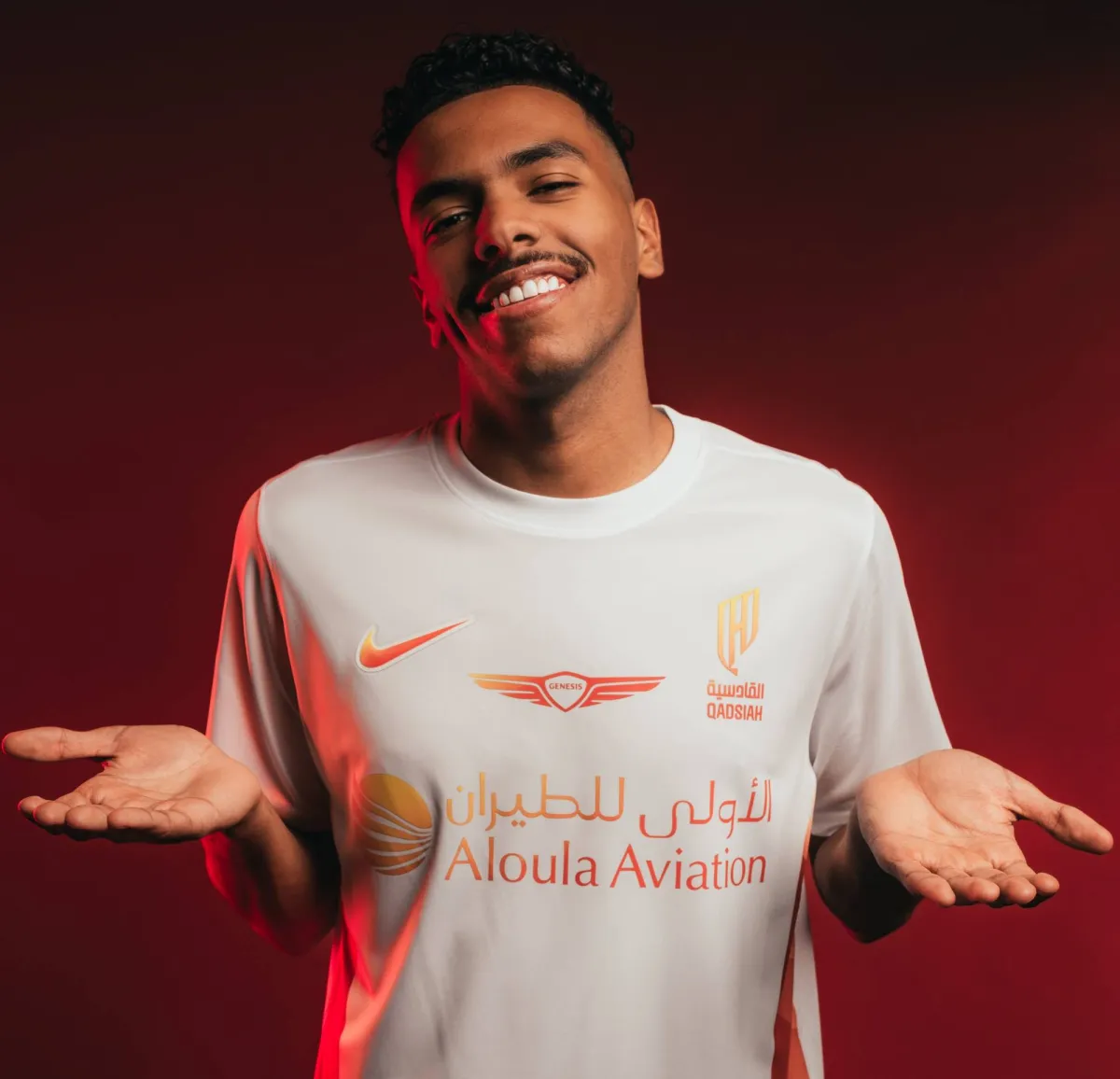 مصعب الجوير بقميص القادسية بعد توقيع العقد (موقع النادي)
