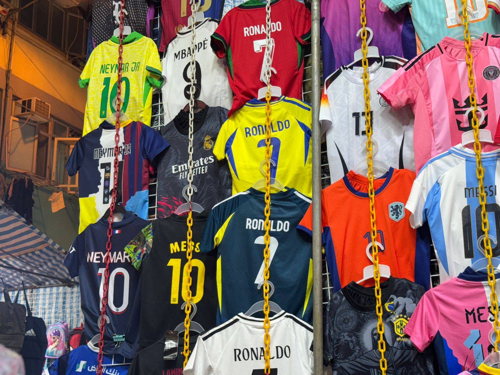 كان قميص الهلال الخاص بمشاركته الأخيرة ببطولة كأس العالم للأندية حاضراً في أحد المتاجر الرياضية الكبرى الواقعة في أحد مولات هونغ كونغ المتعددة، لكن عدسة «الشرق الأوسط» لم ترصد أي قمصان أخرى حاضرة في المتاجر الرسمية. وفي السوق الليلي «نايت ماركت»، وهو سوق محلي تنتشر فيه الكثير من الأكشاك الصغيرة التي تضم في جنباتها بضائع متنوعة ومختلفة، تنتشر قمصان النصر والهلال ضمن العديد من القمصان الرياضية المقلدة.