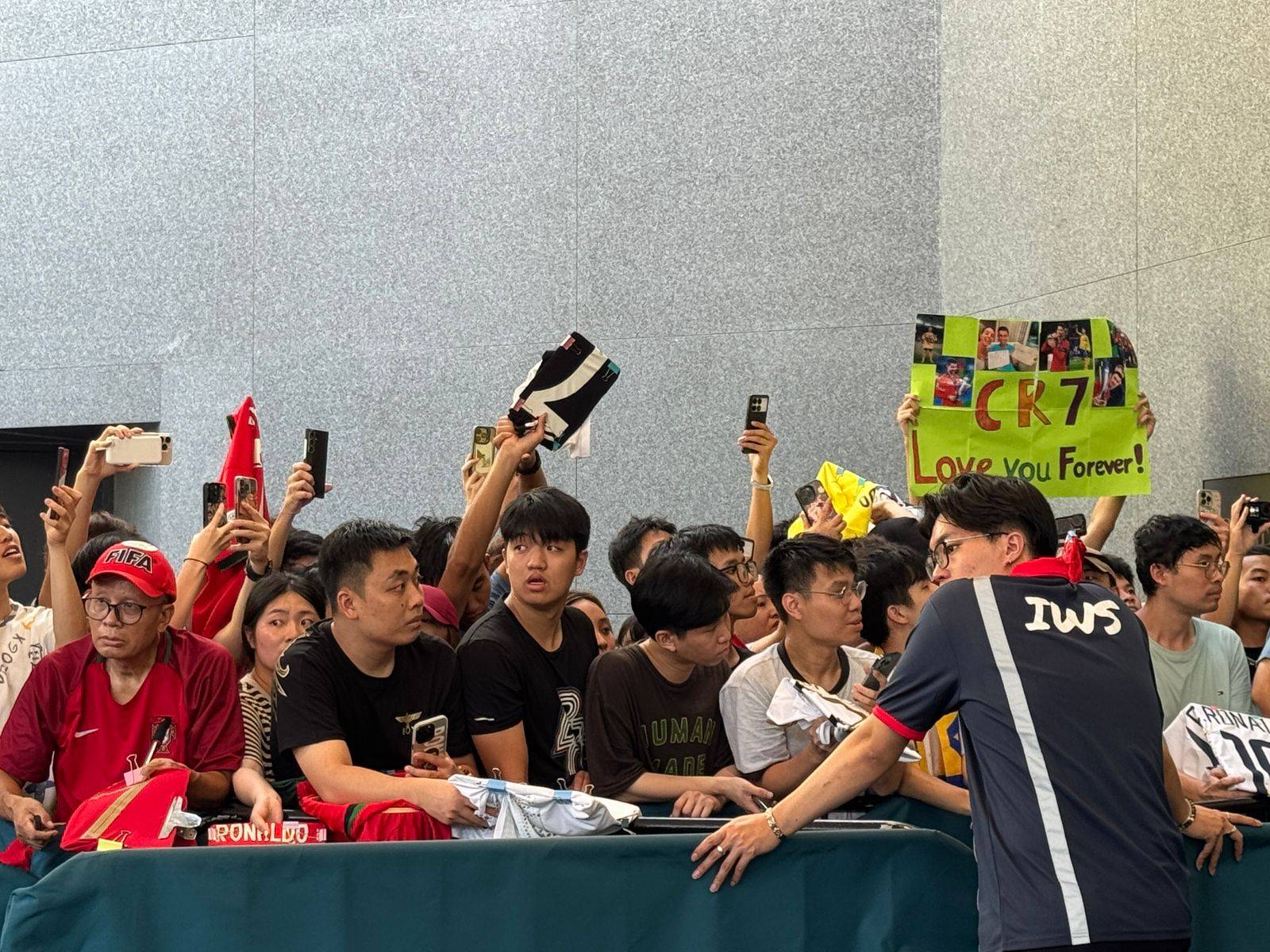 انقسمت الجماهير الحاضرة أمام مقر إقامة بعثة النصر في هونغ كونغ على أربع نقاط موزعة داخل وخارج فندق «ريغنت» في هونغ كونغ، حيث يقيم النجم العالمي كريستيانو رونالدو مع بعثة فريق النصر السعودي استعداداً لمنافسات كأس السوبر السعودي.