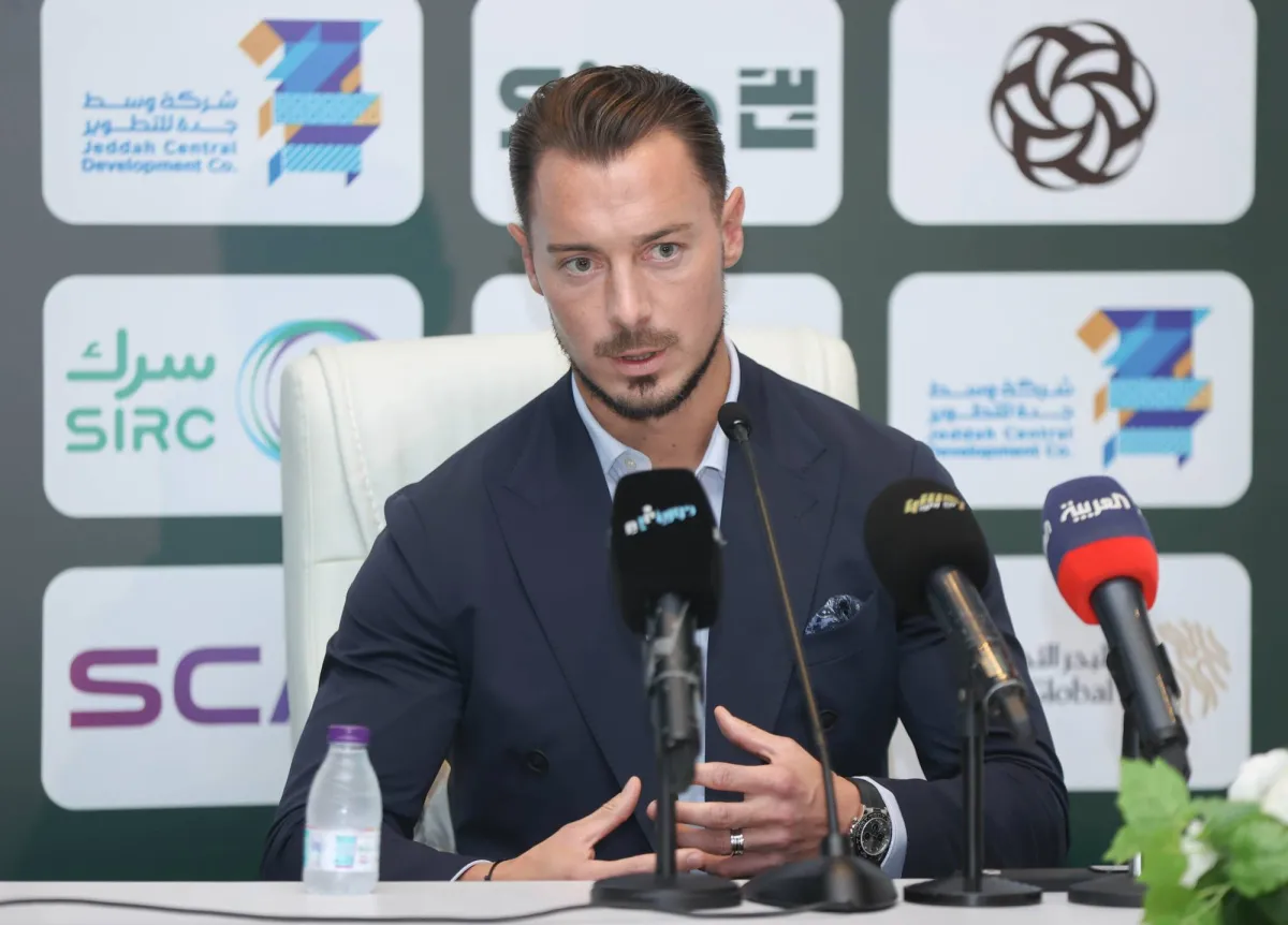 يايسله خلال المؤتمر الصحافي لمواجهة الأهلي ونيوم (عدنان مهدلي)