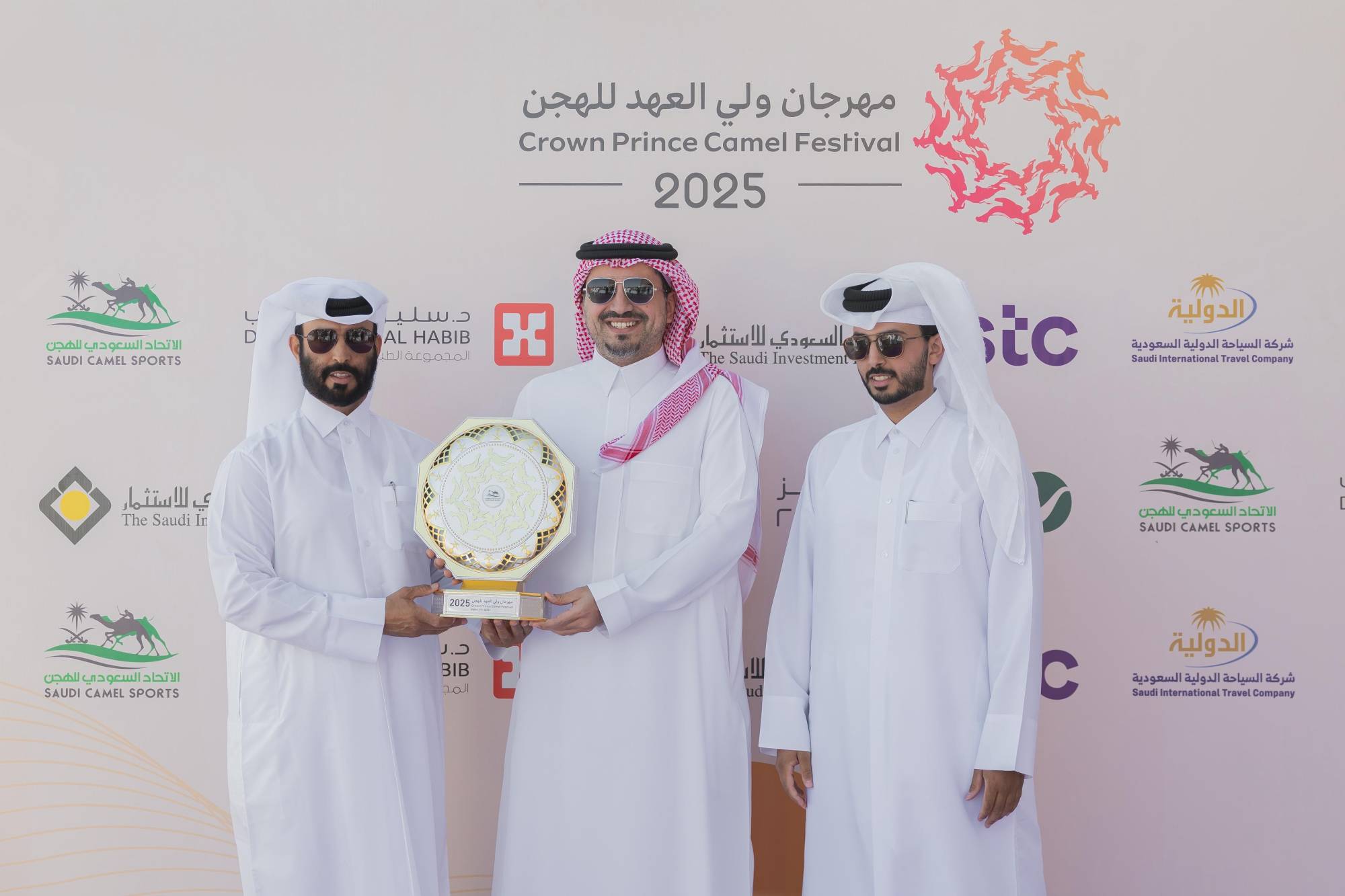 خطفت المطية «عجيب» لمالكها السعودي سلمان الدوسري، لقب كأس مهرجان ولي العهد للهجن 2025، الشوط الرابع (قعدان ـ عام)، وذلك في ختام منافسات فئة «الحقايق» بتوقيت بلغ 2:53.788 دقيقة.