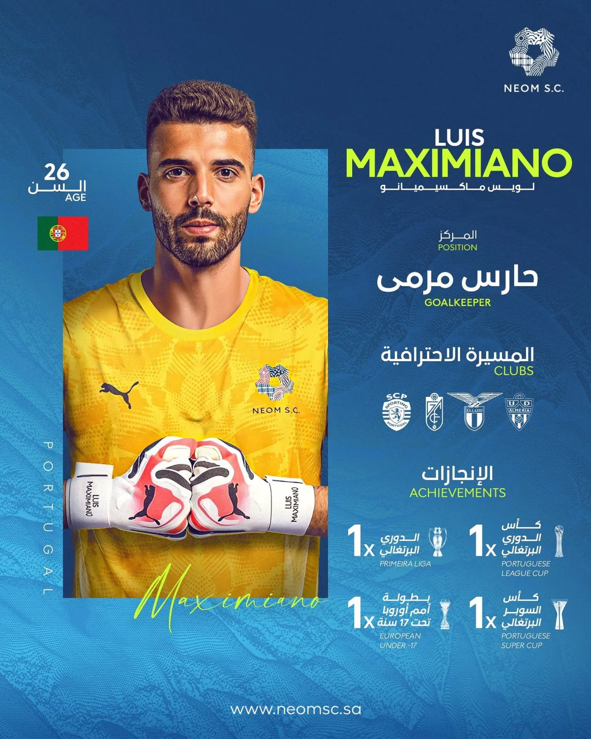 وكتب النادي عبر حسابه في منصة «إكس»: «من أوروبا إلى نيوم، لويس ماكسيميانو يحمي عرين نيوم».