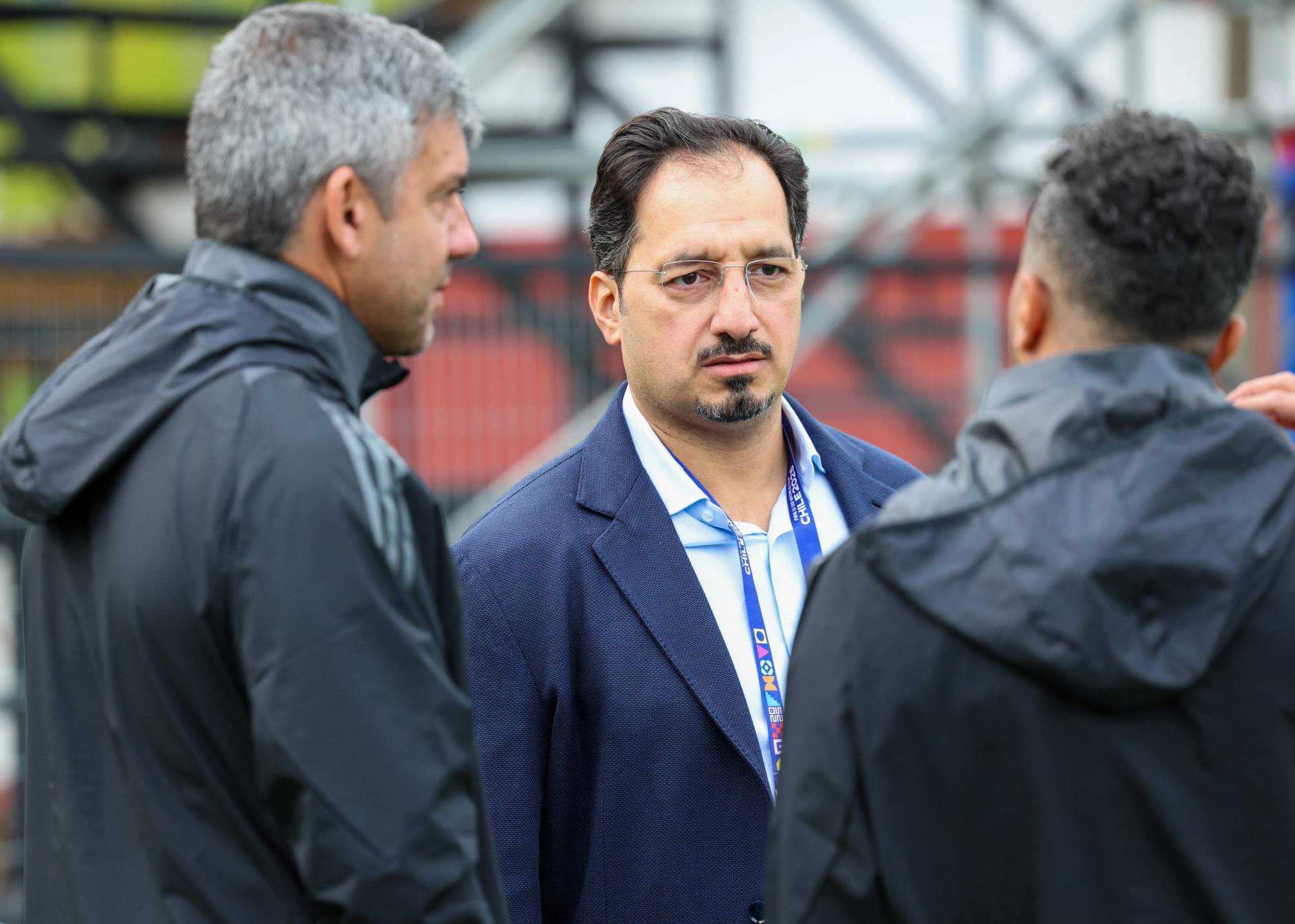 ياسر المسحل رئيس اتحاد كرة القدم خلال حضوره التدريبات (الشرق الأوسط)