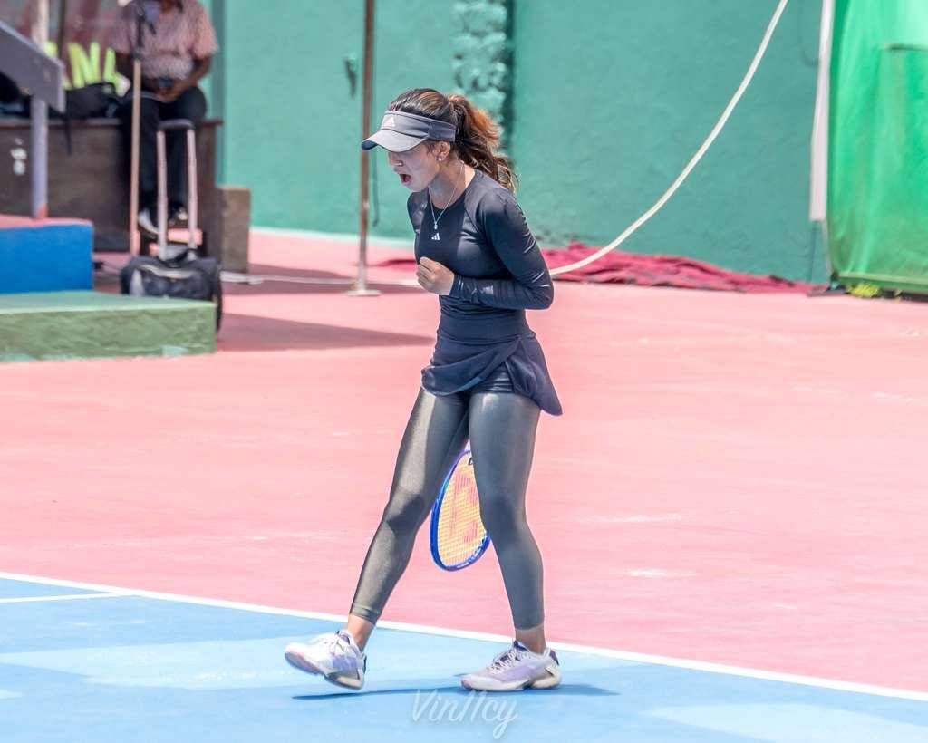 هنية فرِحة عقب الفوز (الاتحاد السعودي للتنس)