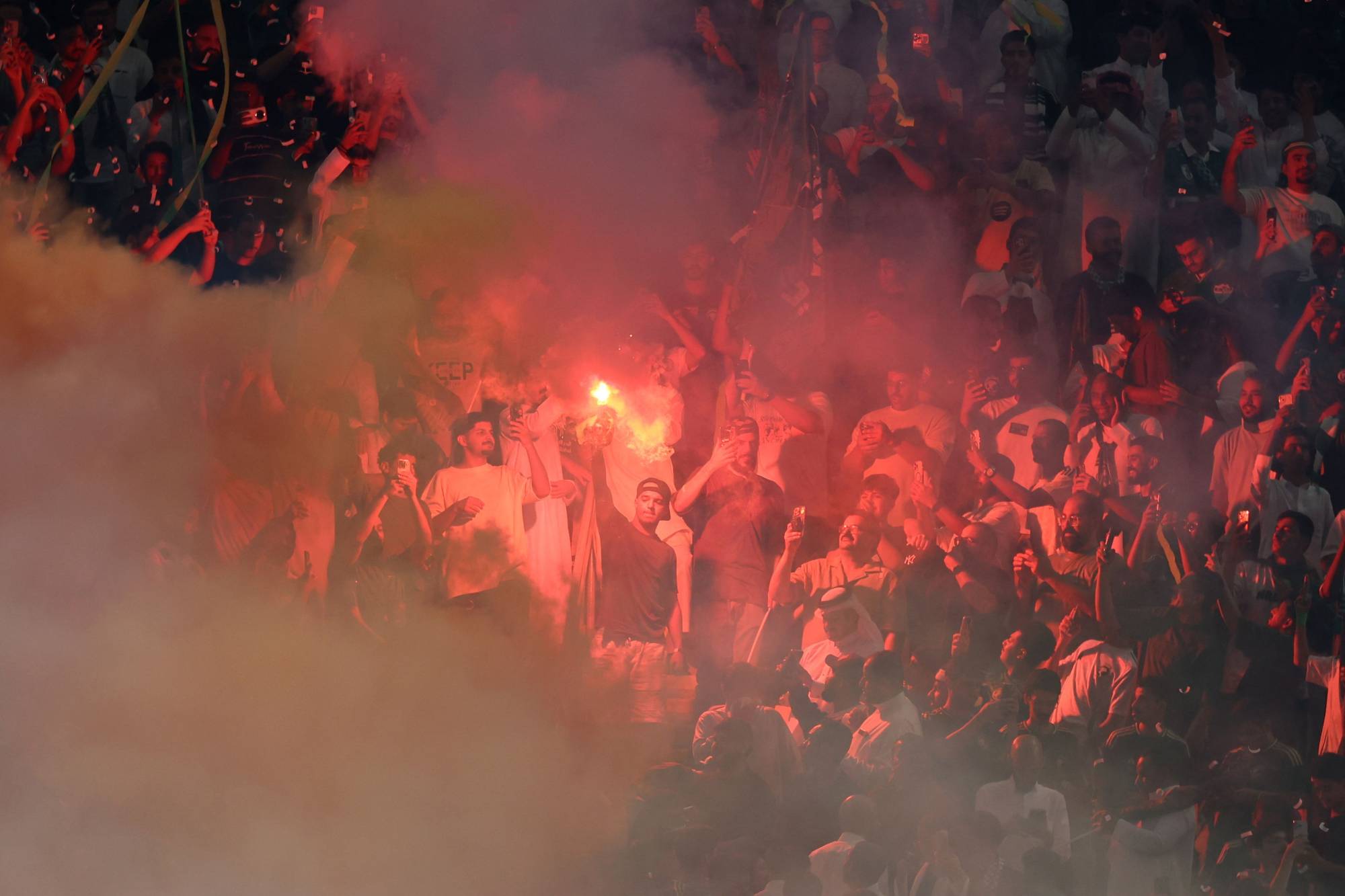 جماهير الأخضر في ملعب الجوهرة (أ.ف.ب)