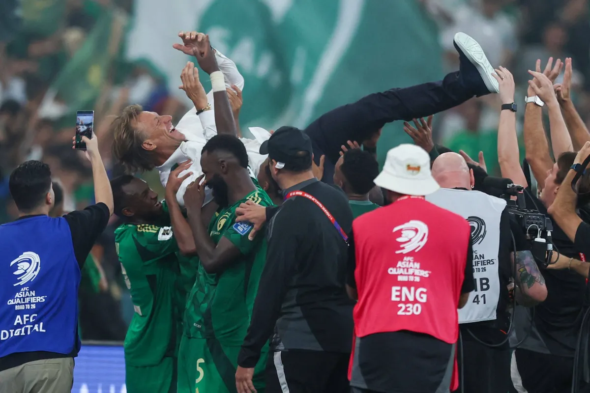 لحظة إعلان بطاقة المنتخب السعودي (أ.ف.ب)