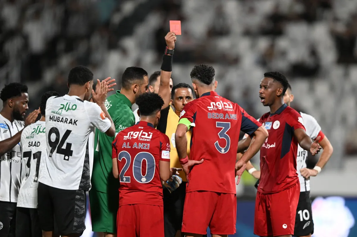 أكمل ضمك المباراة بعشرة لاعبين بعد حالة الطرد التي تعرض لها عبد القادر بدران في الشوط الأول.