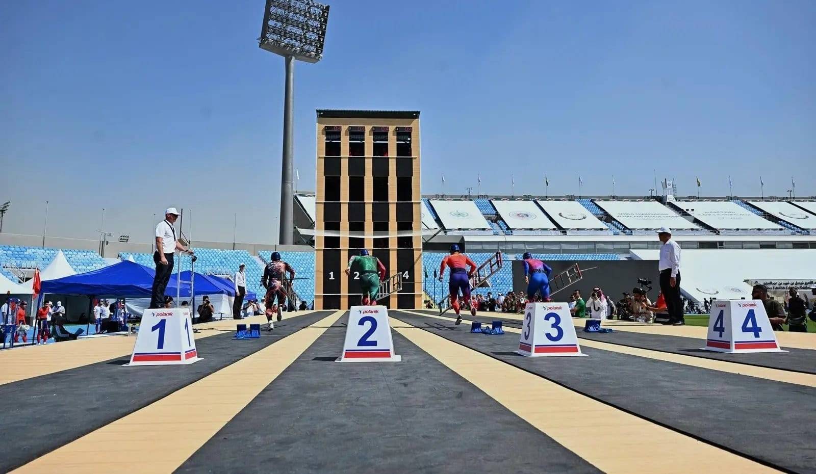واستُكملت المنافسات في الفترة المسائية بإقامة الأدوار التمهيدية لسباق السيدات، تلتها منافسات نصف النهائي والنهائي، حيث جاءت في المركز الأول لودينا آنا (روسيا الاتحادية) بزمن (15.49) ثانية، وبالمركز الثاني كولوميتوفا أوكسانا (روسيا الاتحادية) بزمن (15.54) ثانية، والمركز الثالث عبدوفايتوفا جايرونا (أوزبكستان) بزمن (19.69) ثانية.ويشارك في البطولة أكثر من (300) متسابق من الرجال والسيدات يتنافسون في أربع مسابقات رئيسة هي السلم الخطّاف، وسباق (100) متر حواجز، وسباق (400) متر تتابع، ومسابقة المكافحة.