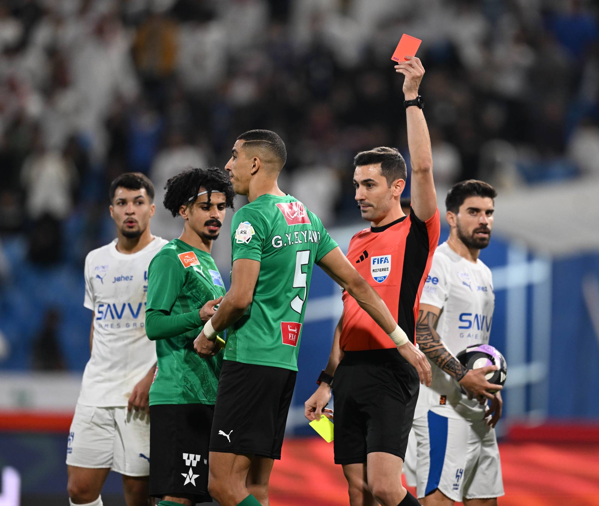 وتلقى لازارو بطاقة حمراء قرب ساعة من اللعب لتدخل عنيف، لكن بعدها مباشرة هزّ روبن نيفيز لاعب الهلال شباكه بالخطأ، وهو يحاول إبعاد تمريرة عرضية.