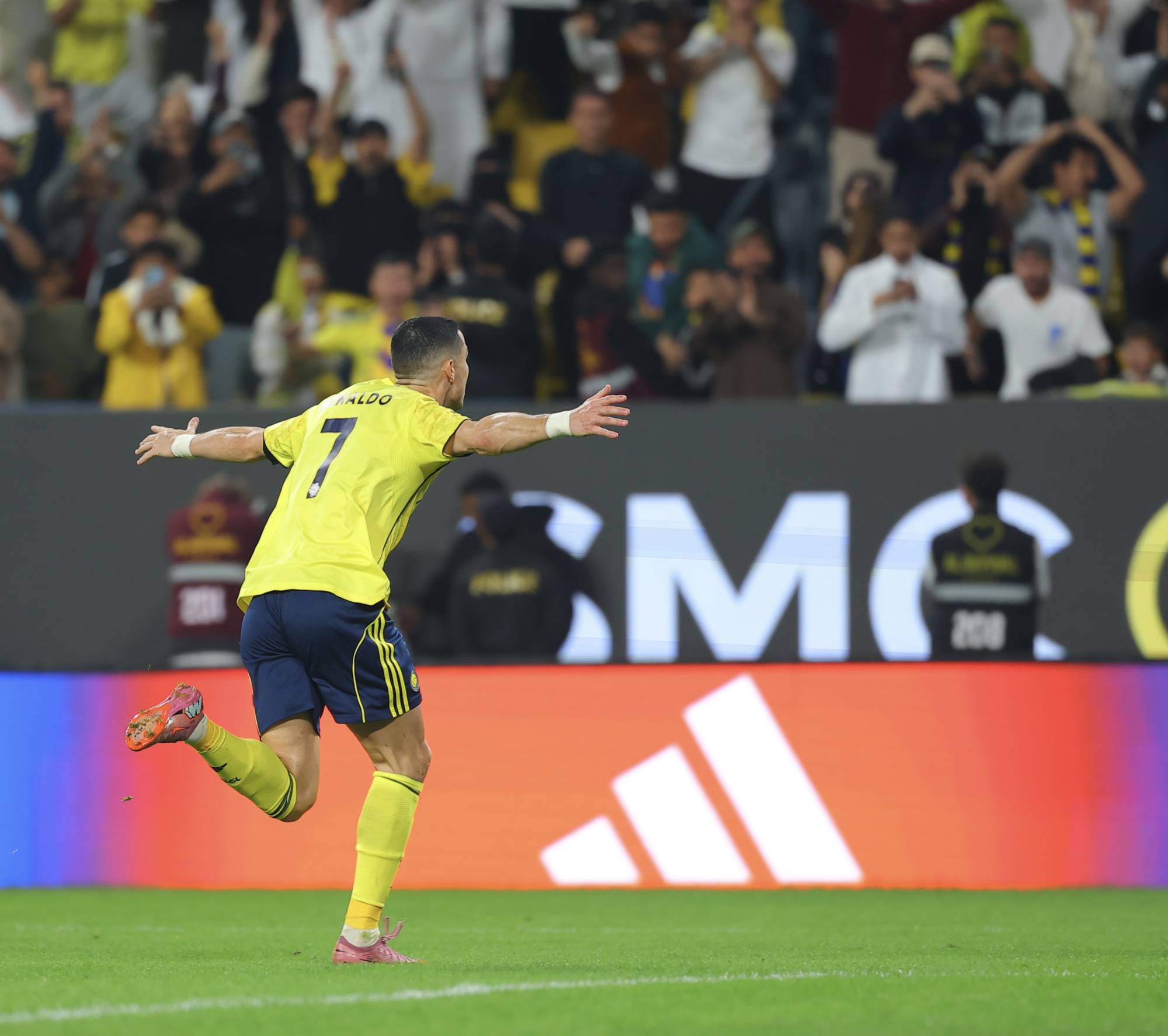 رونالدو محتفلاً بهدفه المذهل (تصوير: عبد العزيز النومان)