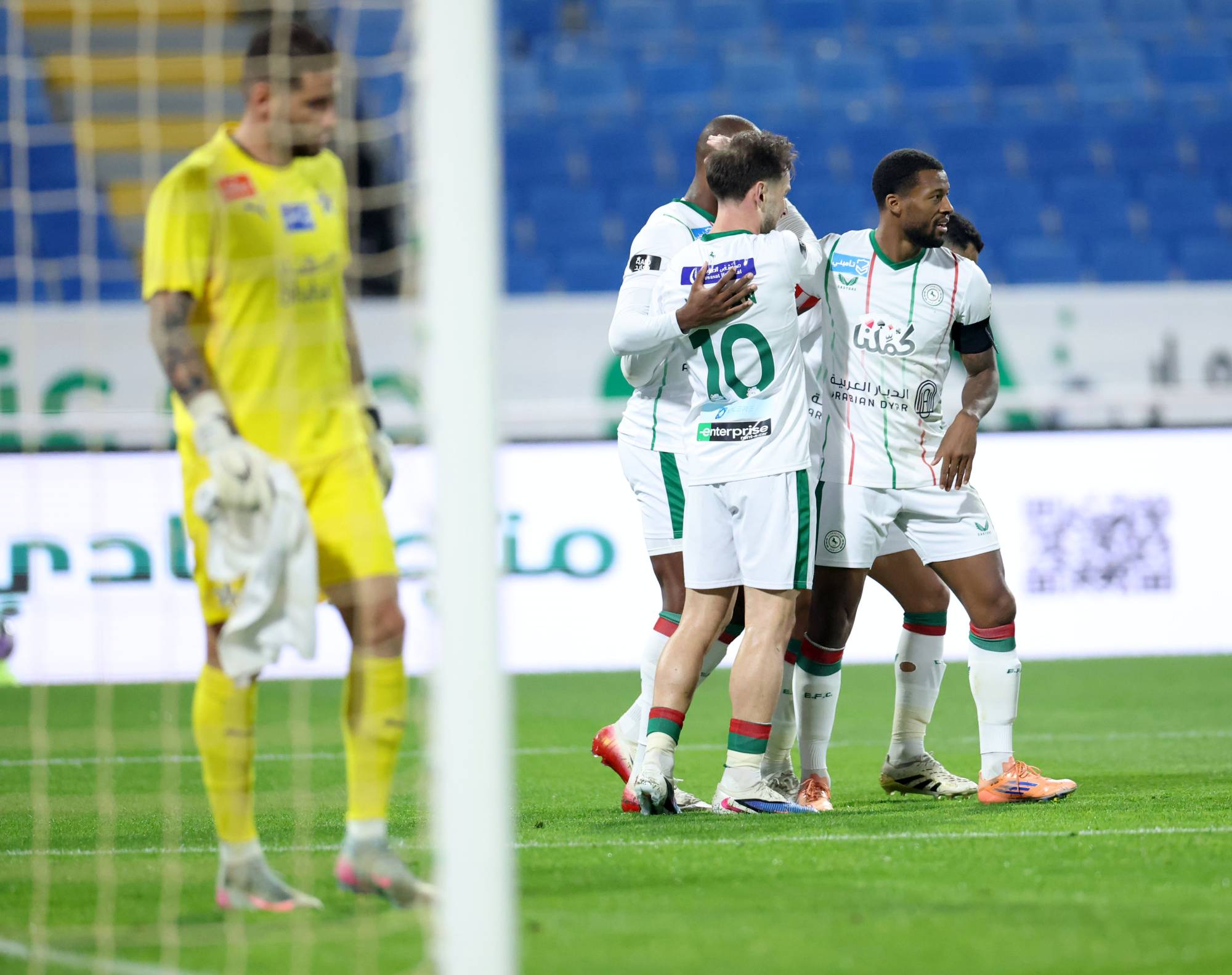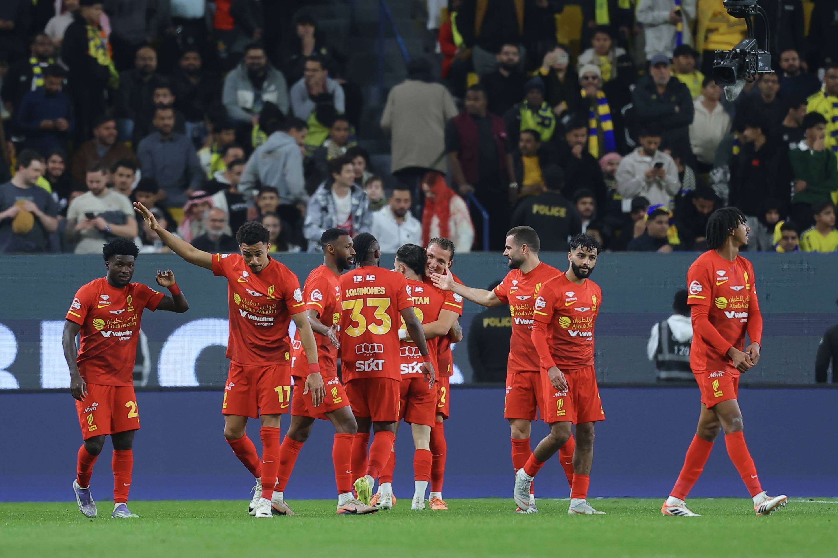 وقبلها، اضطر كوين كاستيلس، حارس مرمى القادسية، للخروج من الملعب على محفة إثر تدخل قوي. وقلص البرتغالي كريستيانو رونالدو الفارق من ركلة جزاء في الدقيقة 81، لكن فريقه لم يتمكن من إكمال عودته في النتيجة.