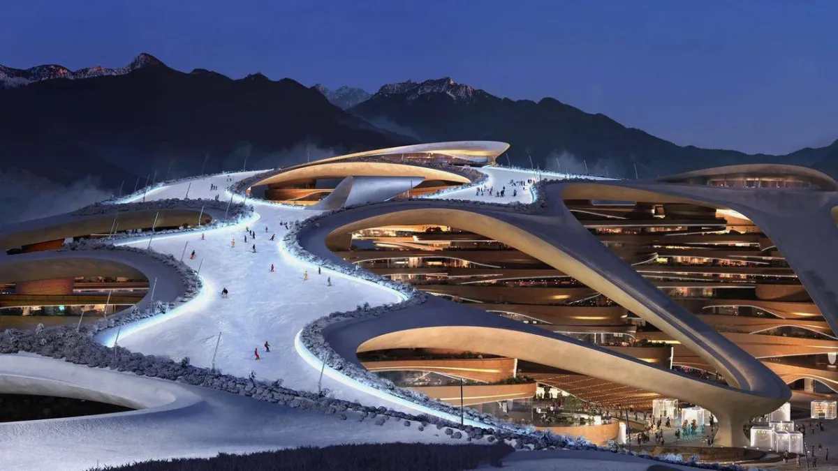 من أعمال البناء في مدينة التزلج الشتوية بنيوم (الشرق الأوسط)