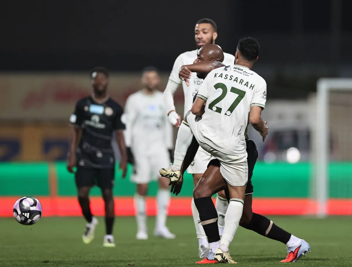 وشهدت المباراة إثارة كبيرة، إذ أهدر فابيو مارتينيز مهاجم الحزم ركلة جزاء في الدقيقة 34 تصدى لها كوين سيلفا، قبل أن يقرر الحكم إعادتها بعد مراجعة طويلة لتقنية الفيديو التي أوضحت تقدم حارس ضمك عن خط المرمى قبل التصدي للكرة.