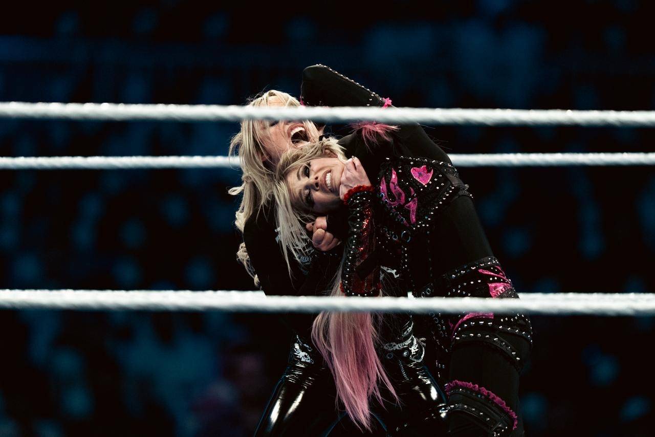 وفي منافسات السيدات، حققت شارلوت فلير وأليكسا بليس فوزاً مهماً في نزال الفرق أمام ليف مورغان وروكسان بيريز، بمرافقة راكيل رودريغيز.