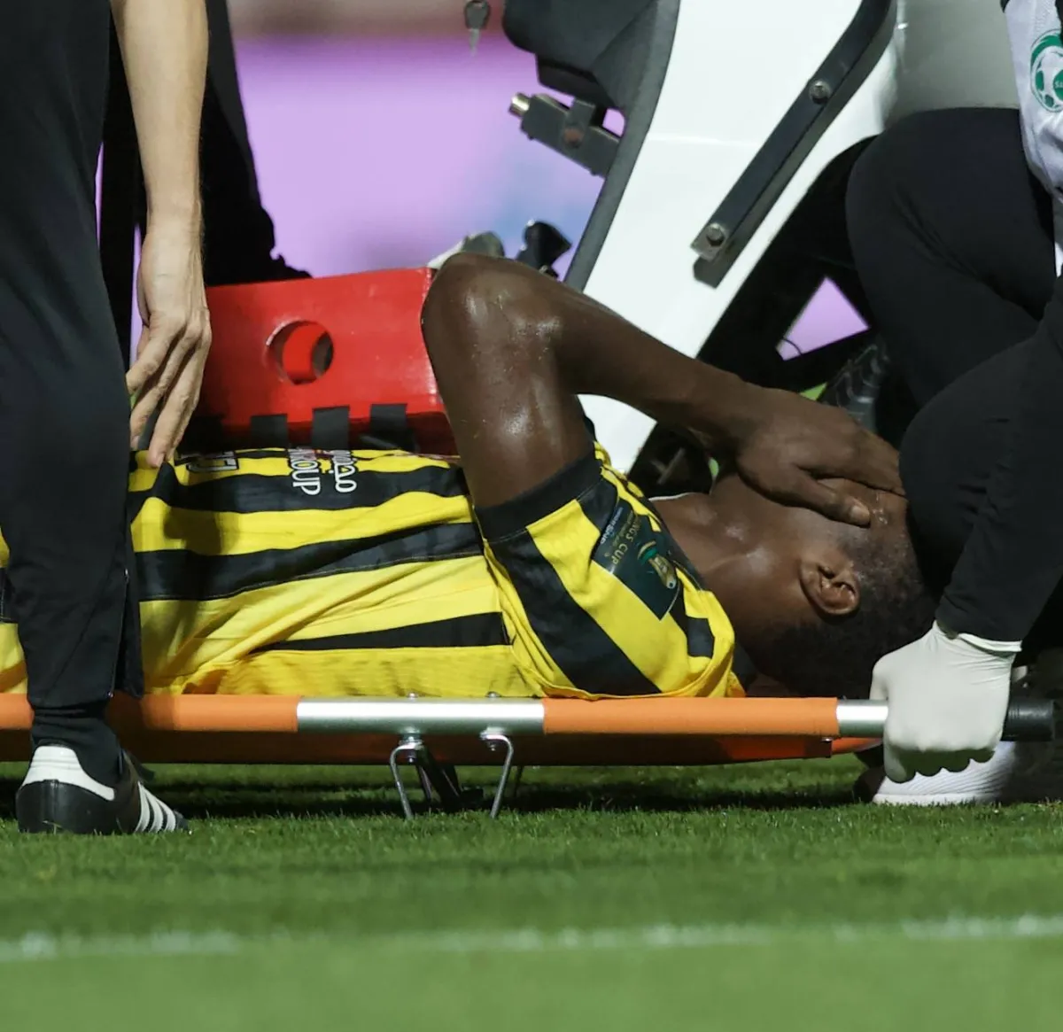 وكان دومبيا خرج محمولاً على النقالة خلال المواجهة وسط صدمة زملائه والجماهير الاتحادية في ملعب الرس، علماً بأنه يعد أحد أكثر النجوم إنتاجية خلال الموسم الجاري.
