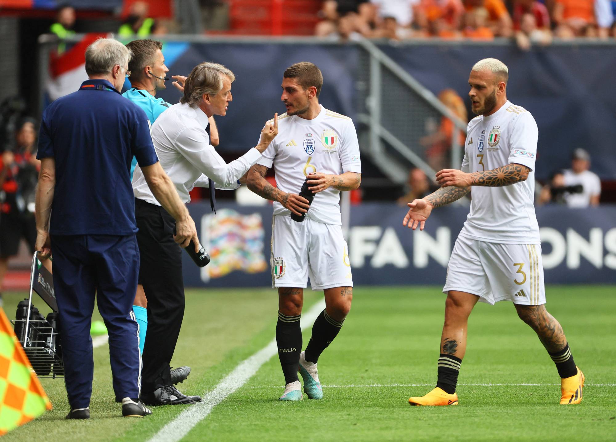 وسجل فيديريكو دي ماركو (6) وديفيدي فراتيزي (20) وفيديريكو كييزا (72) أهداف إيطاليا التي حلت ثالثة للمرة الثانية توالياً، بعد فوزها على بلجيكا 2-1 في نسخة 2020-2021، وسجَّل ستيفن بيرخفين (68) وجورجينيو فينالدوم (89) هدفي هولندا.